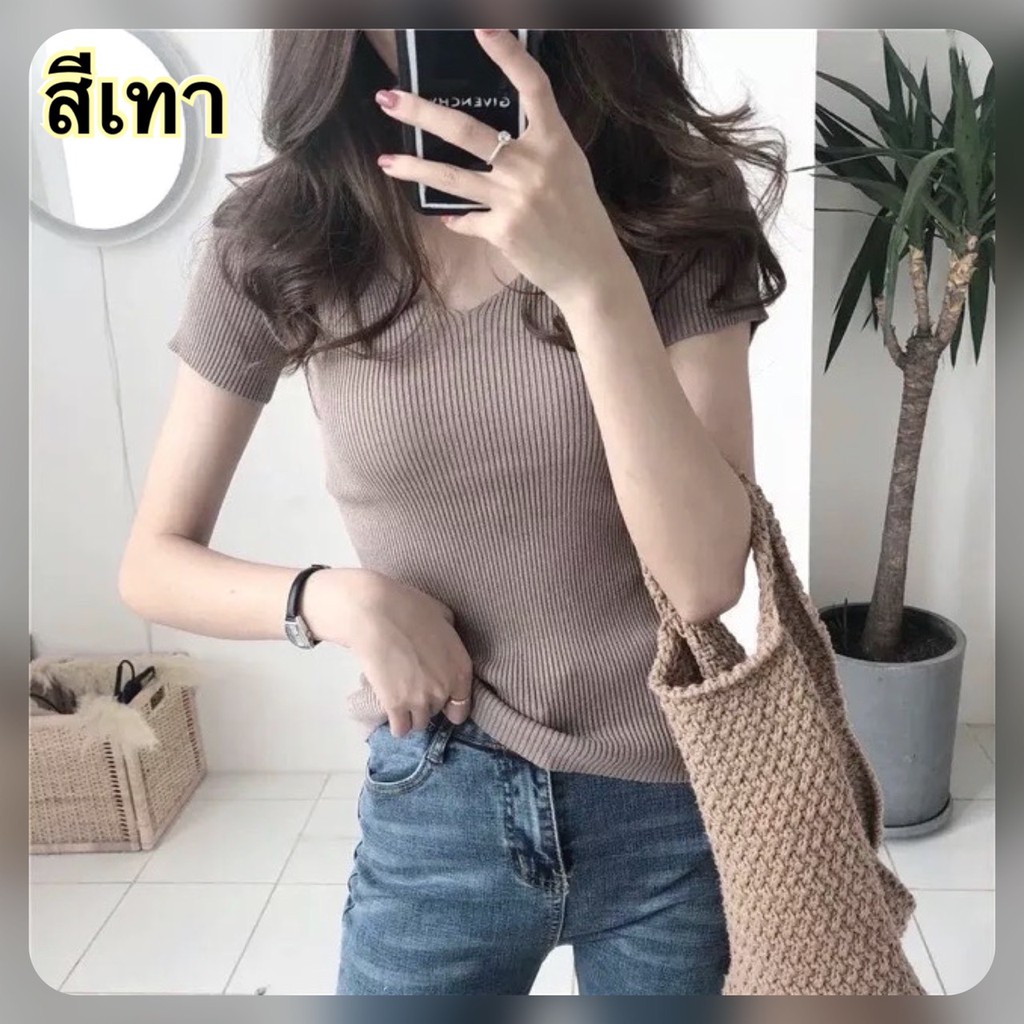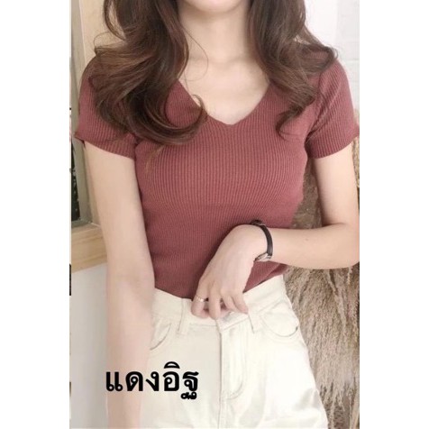 SALABO(พร้อมส่ง) 🔥22 สี ไหมพรมคอวี 🔥เสื้อยืดคอวีสีพื้น ผ้าไหมพรม Free Size เสื้อยืดผู้หญิง #9966