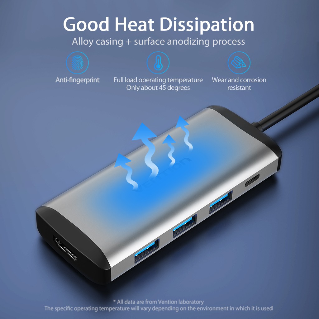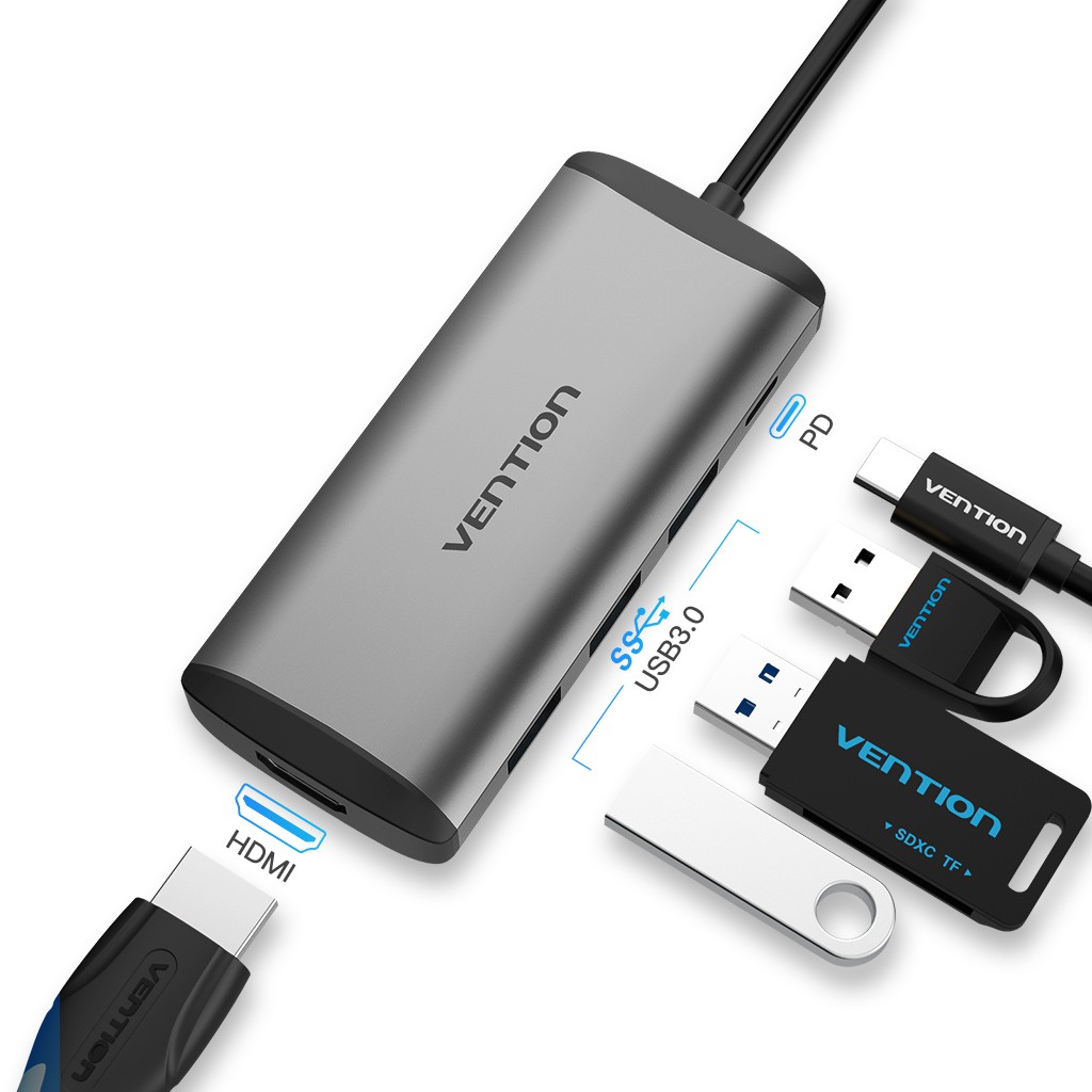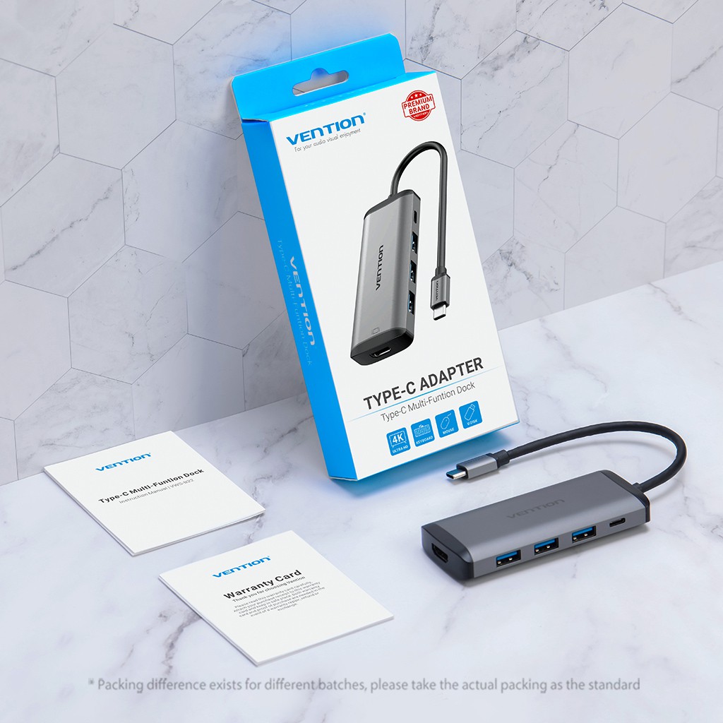 Vention 5-in-1 ฮับอะแดปเตอร์ พอร์ต USB ประเภท C พร้อม HDMI 4K USB 3.0 PD ช่องชาร์จ สำหรับแล็ปท็อป USB-C CNB