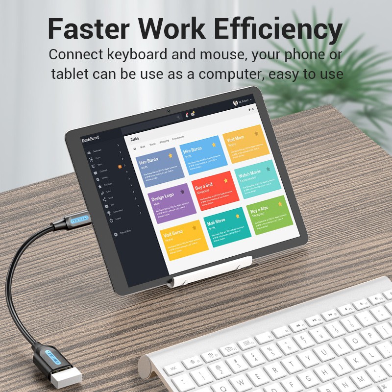 Vention สายต่อ Micro USB OTG USB 2.0 ตัวผู้ ตัวเมีย สำหรับ มือถือ แท็บเล็ต สามารถอ่านได้โดยตรงที่จับเกม U stick link
