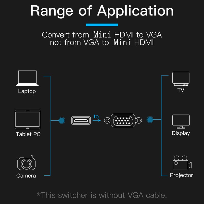 vention mini hdmi to vga adapter male to female 1080 p อะแดปเตอร์แปลงวิดีโอพร้อมสายเคเบิ้ลเสียง 3 . 5 มม. สําหรับกล้อง ultrabooks AGABB