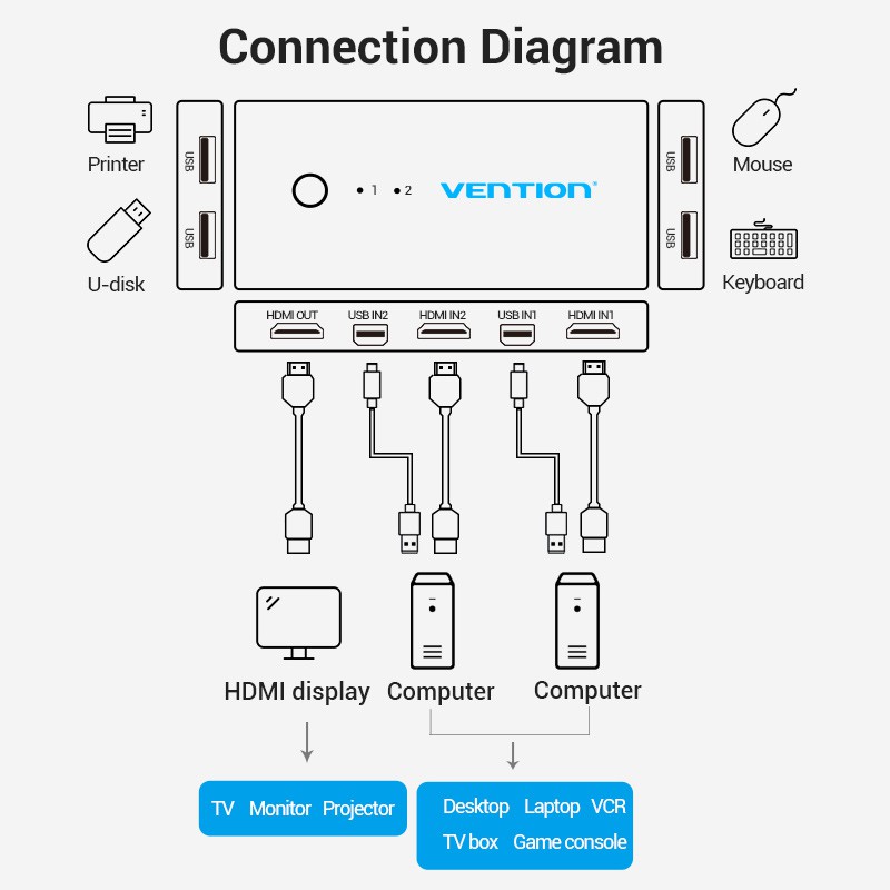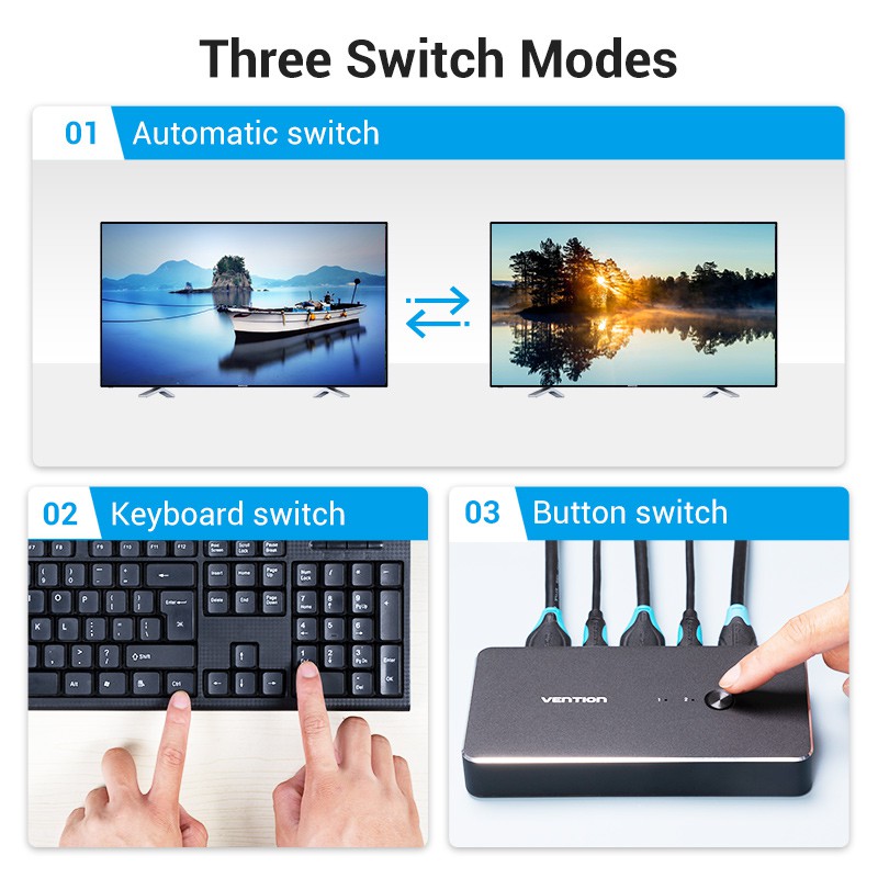 Vention กล่องสวิทช์แยก Hdmi Kvm 2 In 1 Out Box 4 K Usb Kvm Vga Switcher สําหรับเมาส์ คีย์บอร์ด AFR/DBE