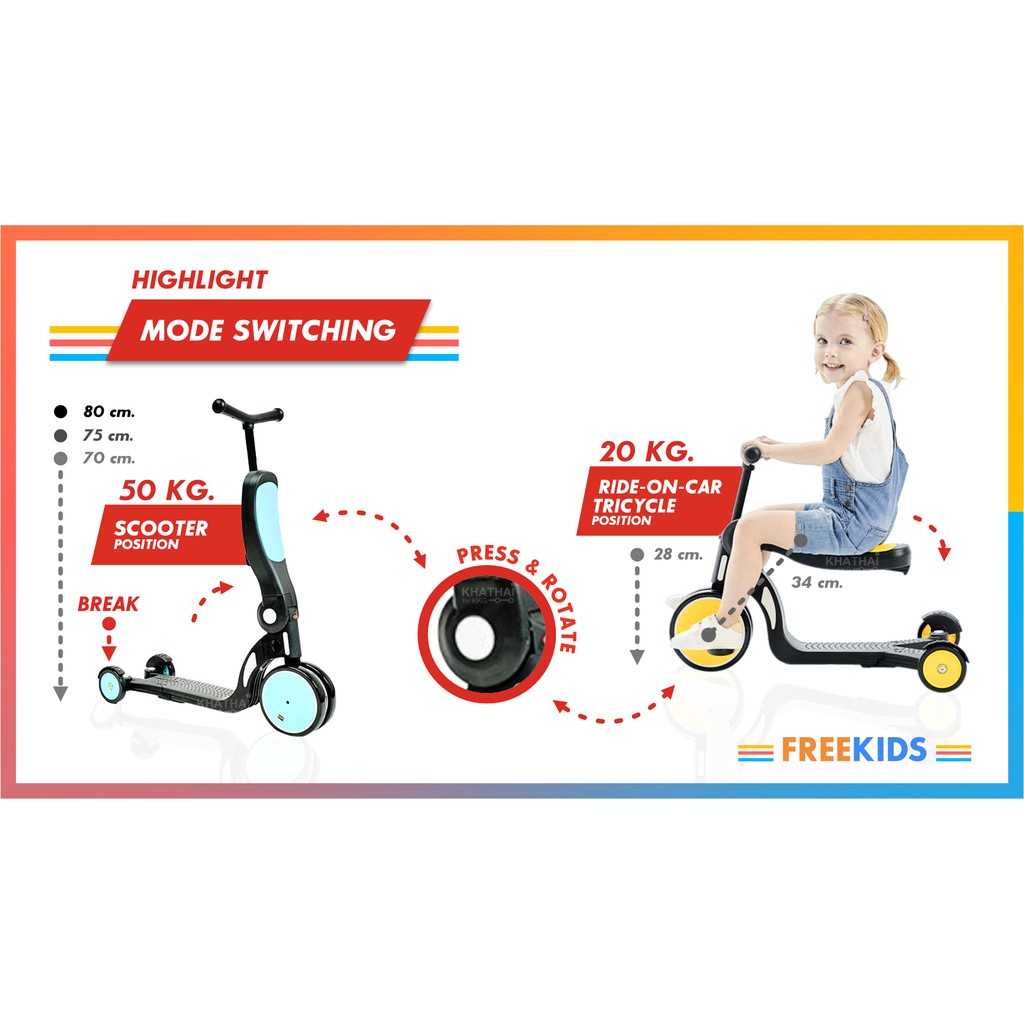 🌈พร้อมส่ง! 6in1 Scooter สกู๊ตเตอร์ สามล้อปั่น จักรยานขาไถ PC-DGN5-1