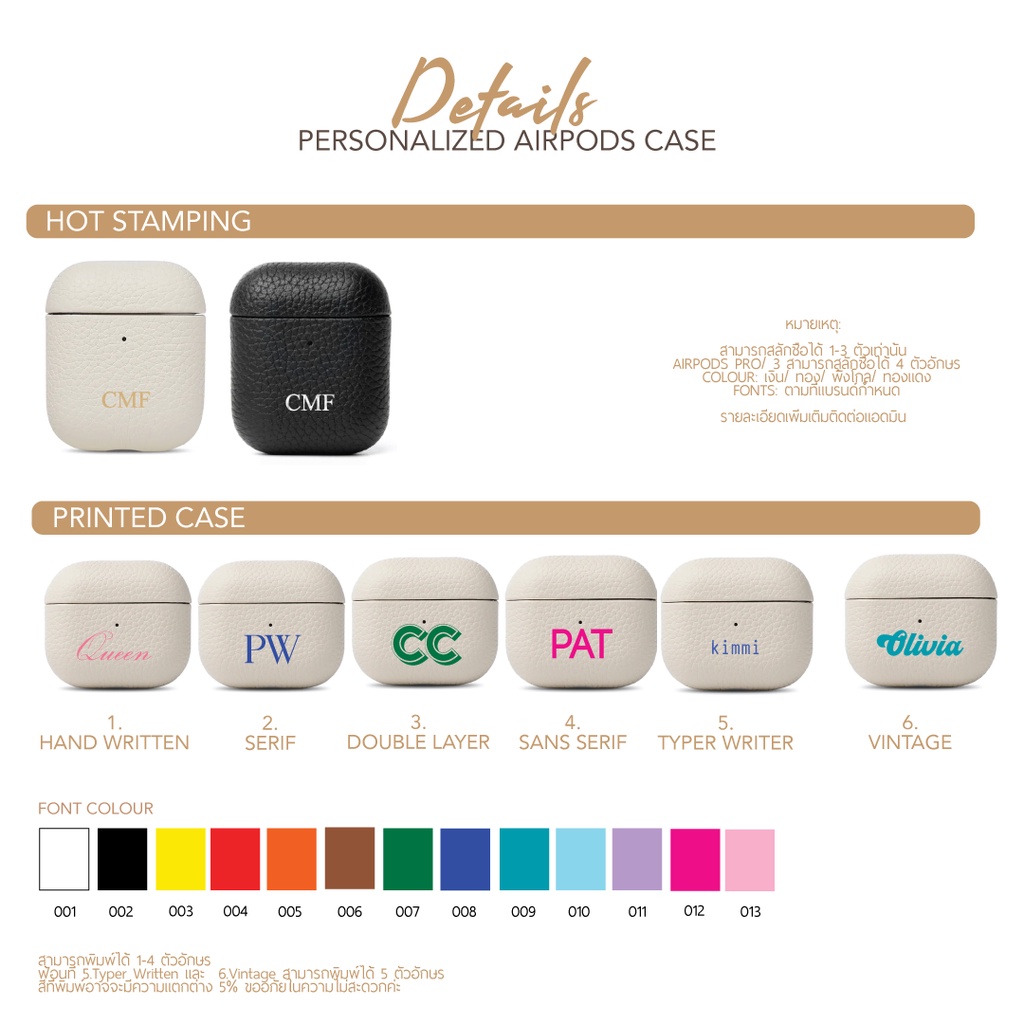 เคสแอร์พอตหนังแท้สลักชื่อฟรี Personalized เคสแอร์พอต Gen 1/2 Gen 3 Pro (แจ้งในแชท)