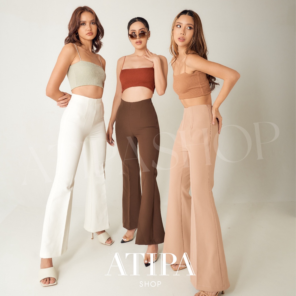 Atipashop - HONESTY PANTS กางเกงขายาว เอวสูง ทรงขาม้า เก็บทรง มีหลายสีให้เลือก