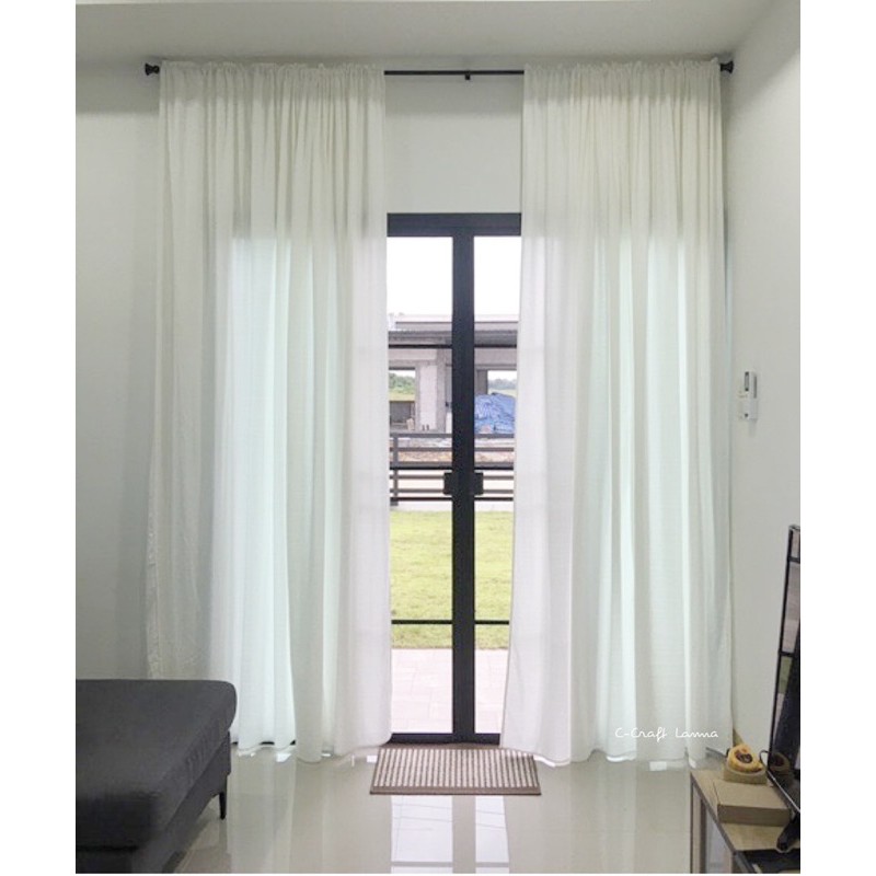 ผ้าม่านประตูสีขาว สไตล์มินิมอล ขนาด110x240 cm ผ้าฝ้าย แบบหนาเรียบ กันแสงได้ น่ารักมาก cms240