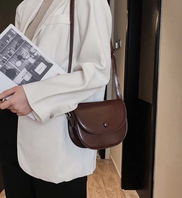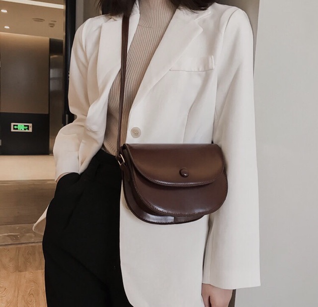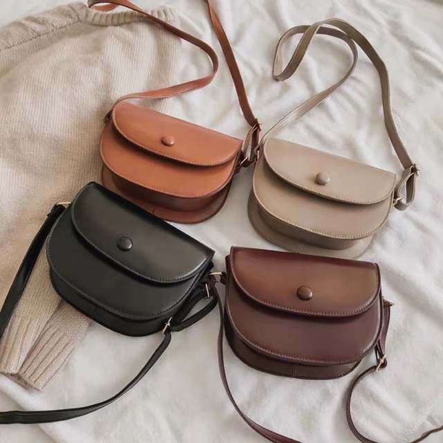 🔥พร้อมส่งจ้า🔥U bag กระเป๋าสะพายข้างหนังพียู มี 4 สี ดำ/เบจ/อิฐ/มะฮอกกานี