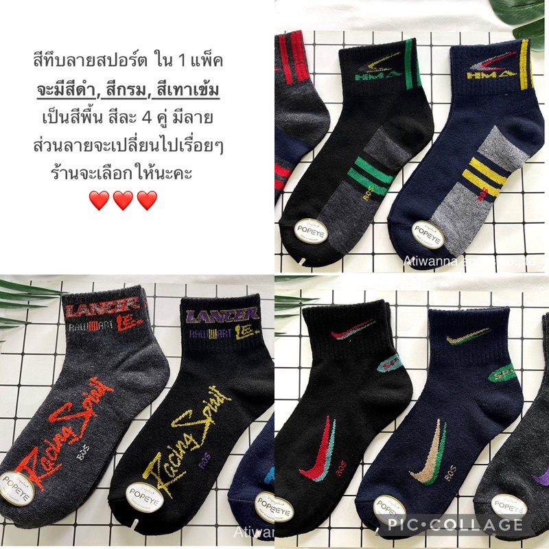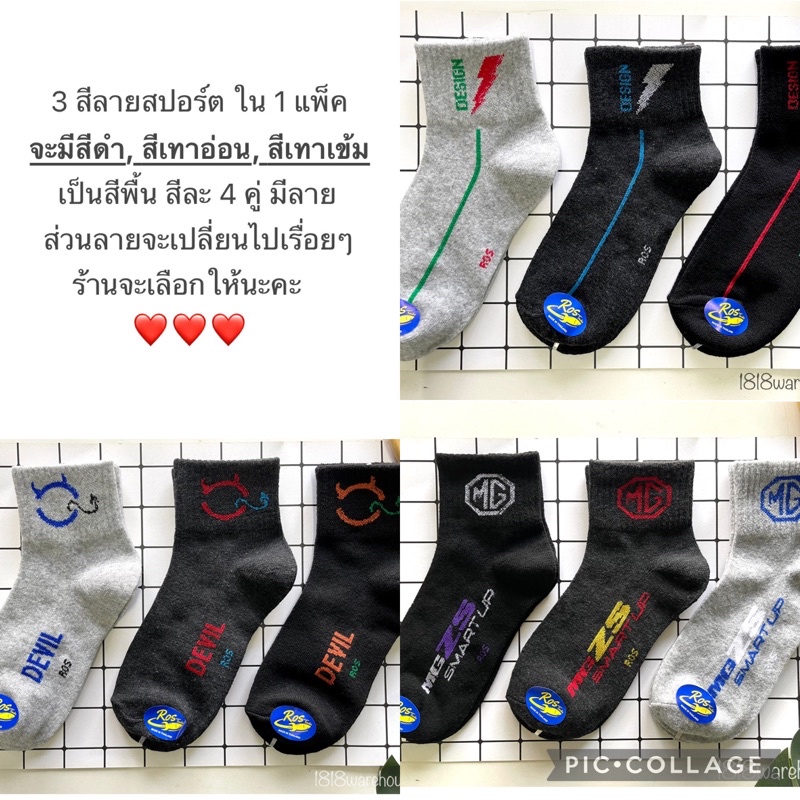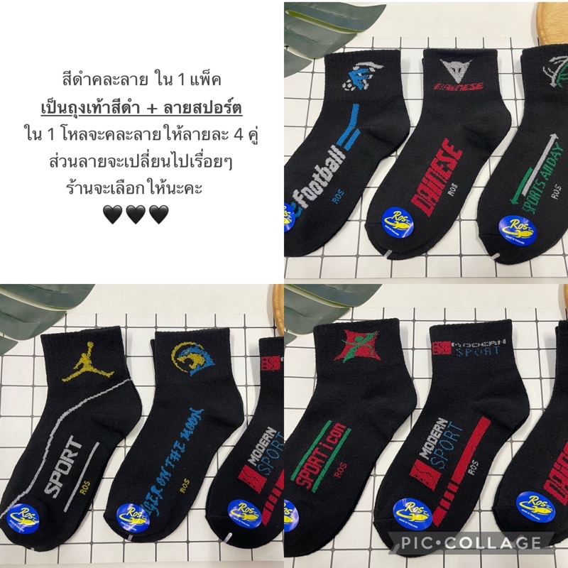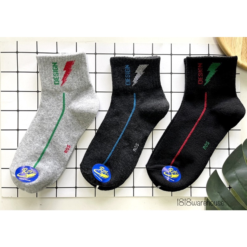 ร้านไทยส่งจากไทย (เกรดA)🔥12 คู่ 🔥 ถุงเท้าข้อกลาง สีพื้น สีดำ สีขาว ใส่ทำงาน ใส่เล่นกีฬา🇹🇭ผลิตในไทย🇹🇭