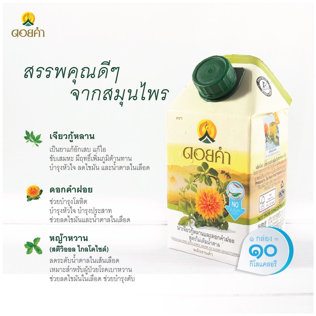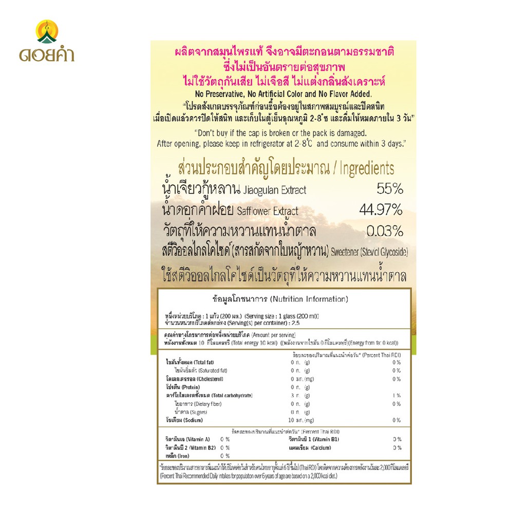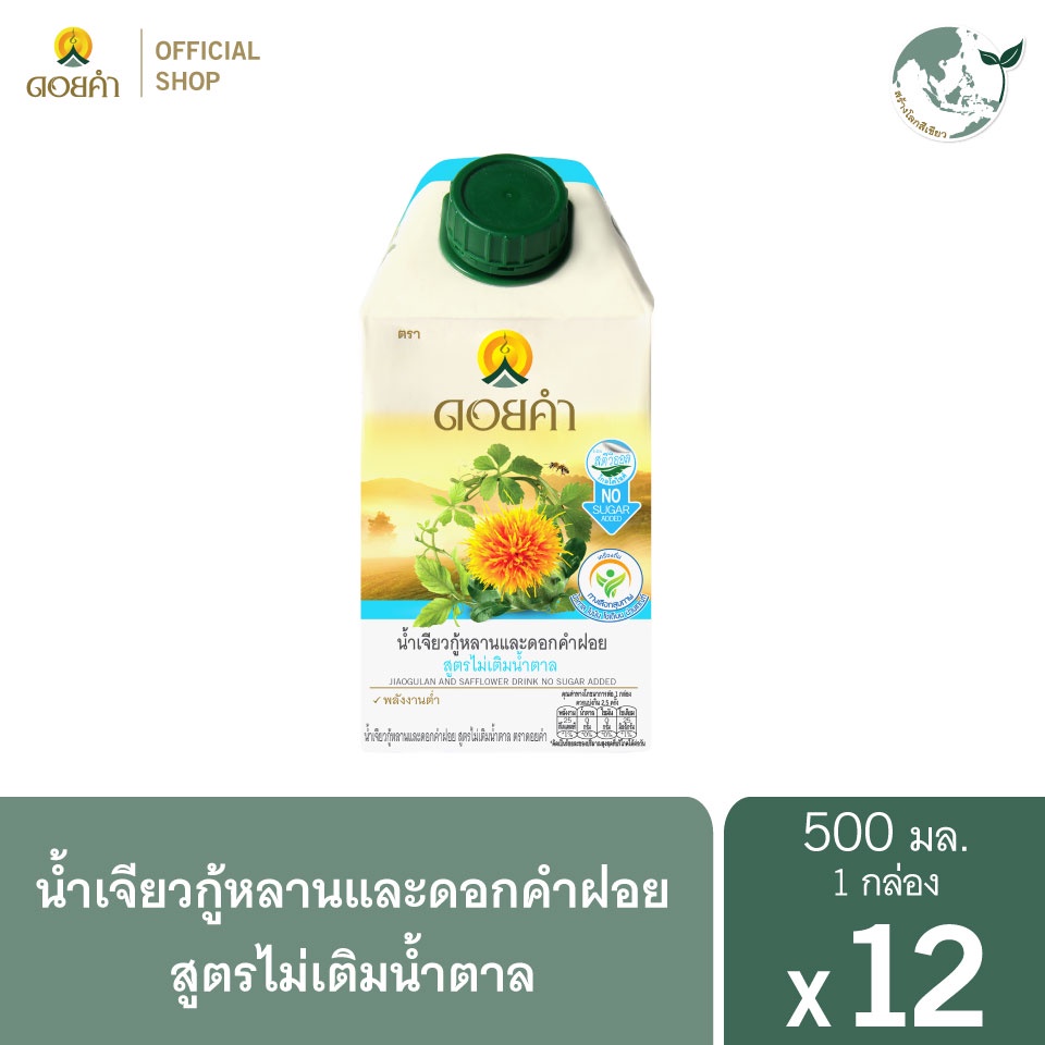 ดอยคำ น้ำเจียวกู้หลานและดอกคำฝอย สูตรไม่เติมน้ำตาล 500 มล. (12 กล่อง)