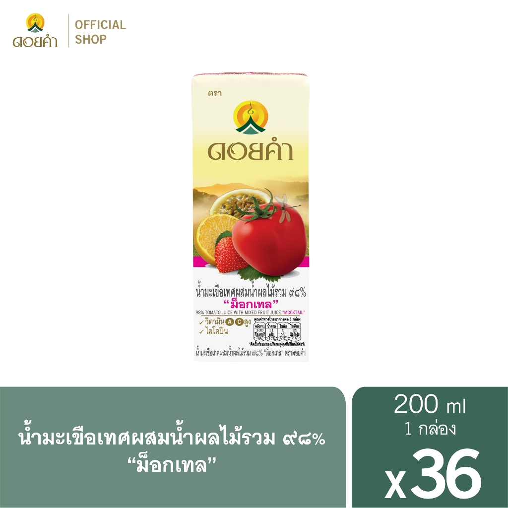 ดอยคำ น้ำมะเขือเทศผสมน้ำผลไม้รวม ๙๘% ม็อกเทล 200 มล. (36 กล่อง)