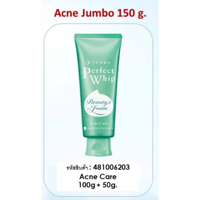 Senka Perfect Whip Acne Care 100 ml เซนกะ โฟม ฟื้นบำรุงผิวจากปัญหาสิว (สีเขียว)