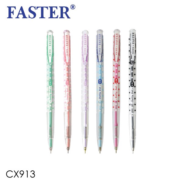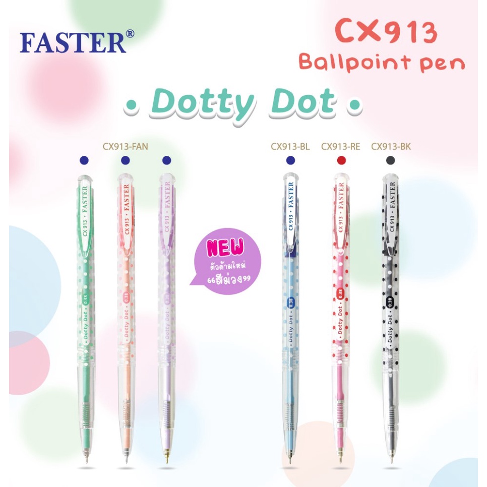 ปากกาลูกลื่น Faster dotty dot ดอทตี้ ดอท CX913 0.38 มม. น้ำเงิน/ดำ/แดง (ด้ามมี 6 สี)