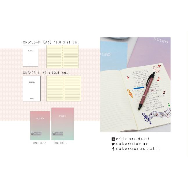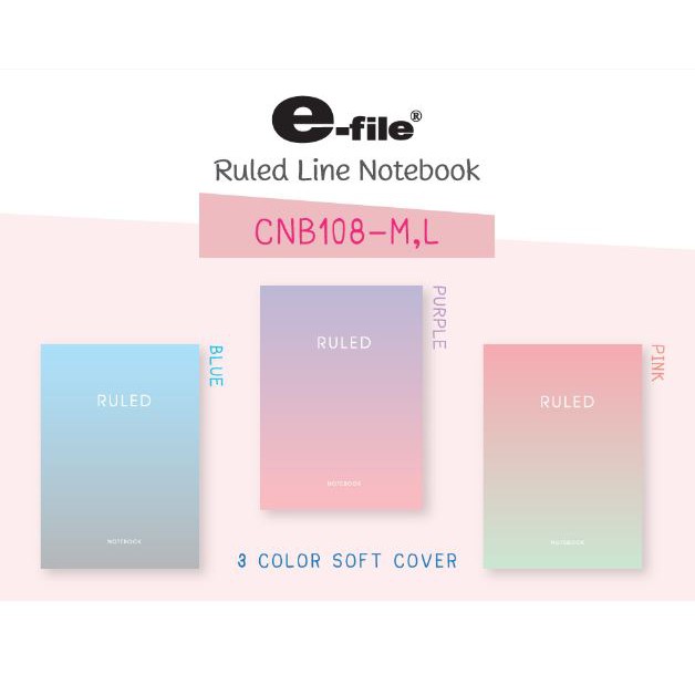 e-file สมุดปกอ่อนพาสเทลไล่สี กระดาษถนอมสายตา RULE CNB108 มีให้เลือก 3 สี 2 ขนาด