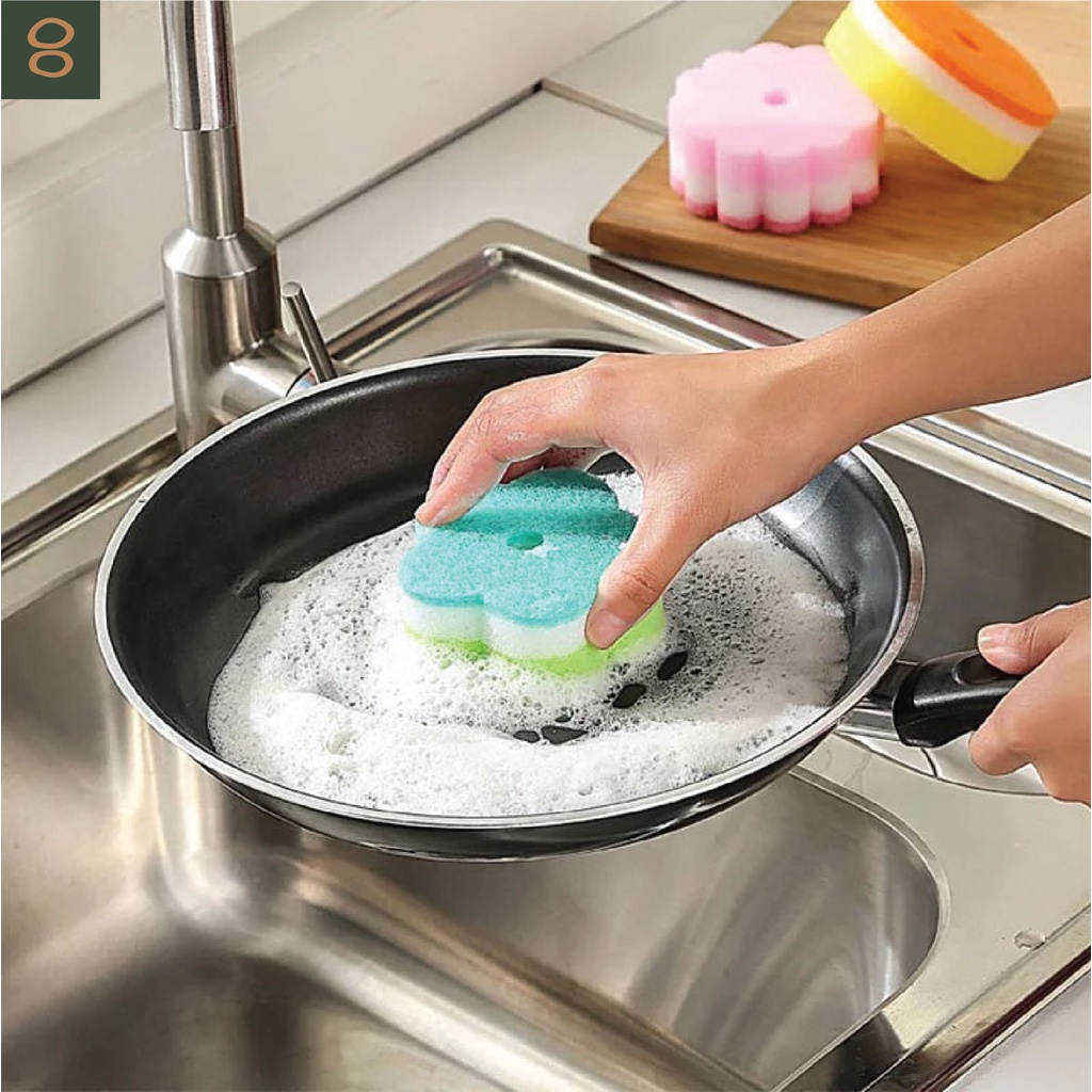8ECEMBER - DISHWASHING SPONGE - ฟองน้ำล้างจาน ฟองน้ำทำความสะอาดอเนกประสงค์ ฟองน้ำรูปดอกไม้ โดนัทสีสันน่ารัก
