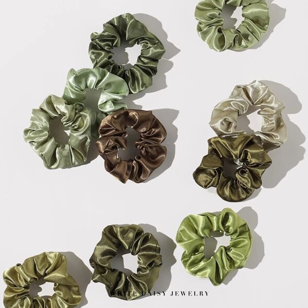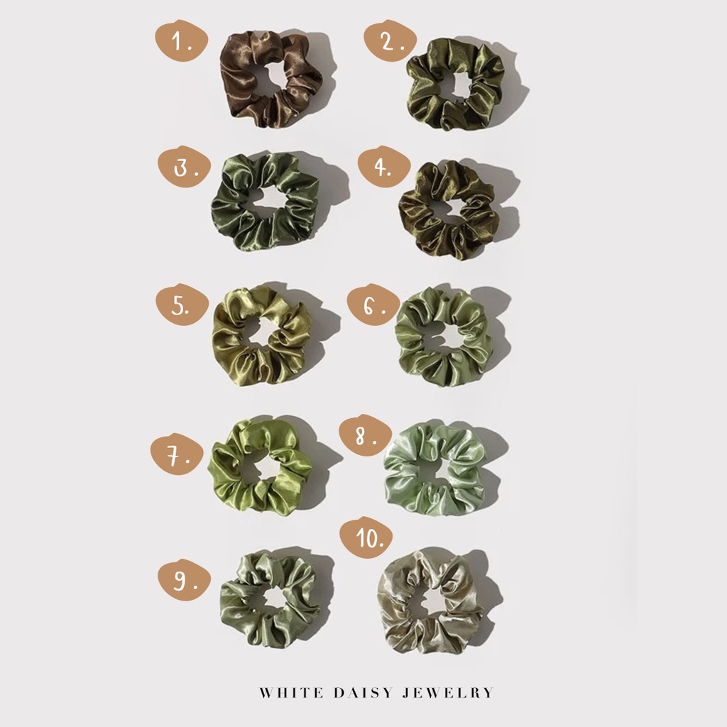 White Daisy ยางรัดผมผ้าซาติน โทนเขียว Plain Satin Scrunchie#WD047