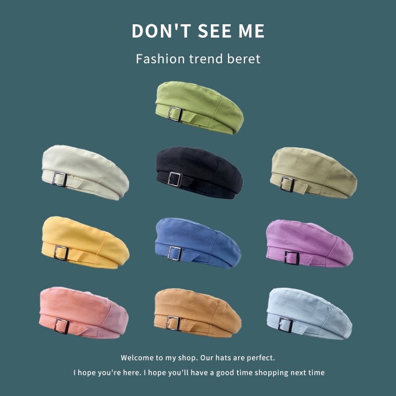 หมวกเบเรต์ ทรงแปดเหลี่ยม สีพื้น เนื้อผ้าบาง สไตล์ญี่ปุ่นและอังกฤษ ย้อนยุค แฟชั่นฤดูร้อน สำหรับผู้หญิง