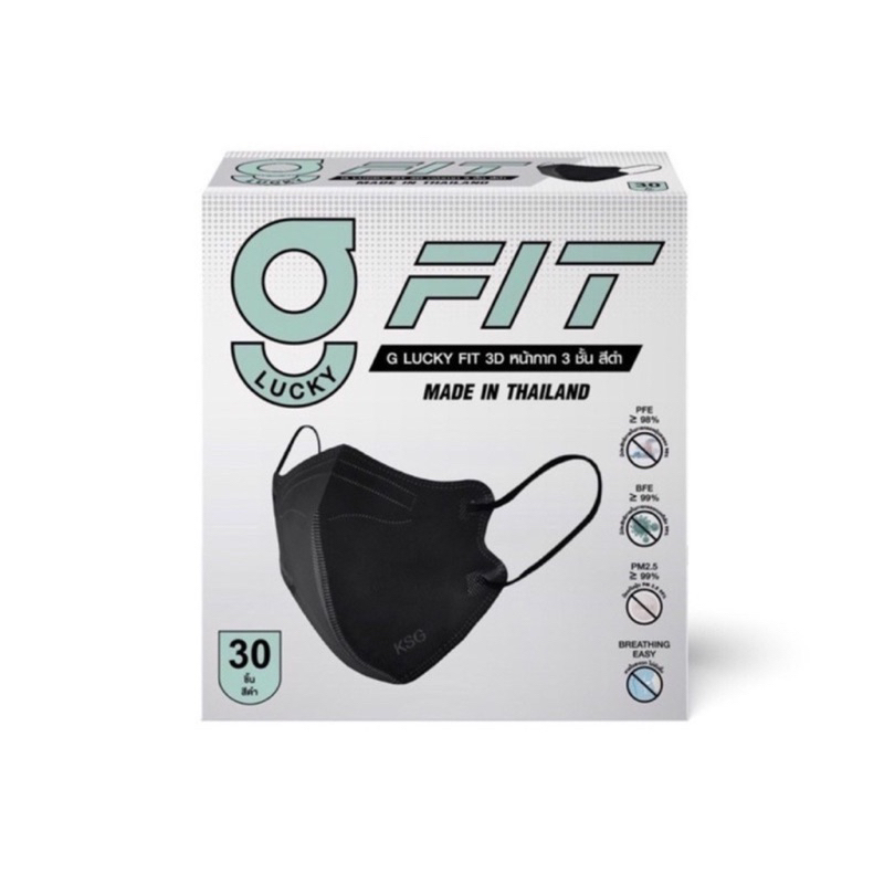 🔱G LUCKY FIT 3D🔱 กล่อง 30 ชิ้น ซอง 5 ชิ้น หน้ากาก 3 ชั้น รูปทรง 3D สำหรับผู้ใหญ่ ป้องกันไวรัสและแบคทีเรีย หายใจสะดวก