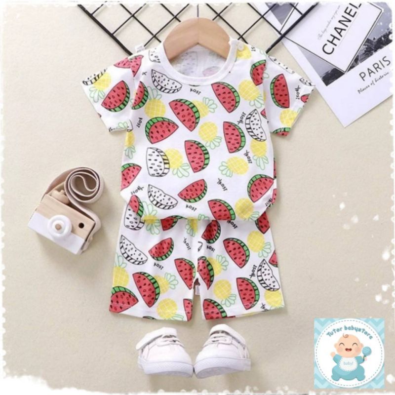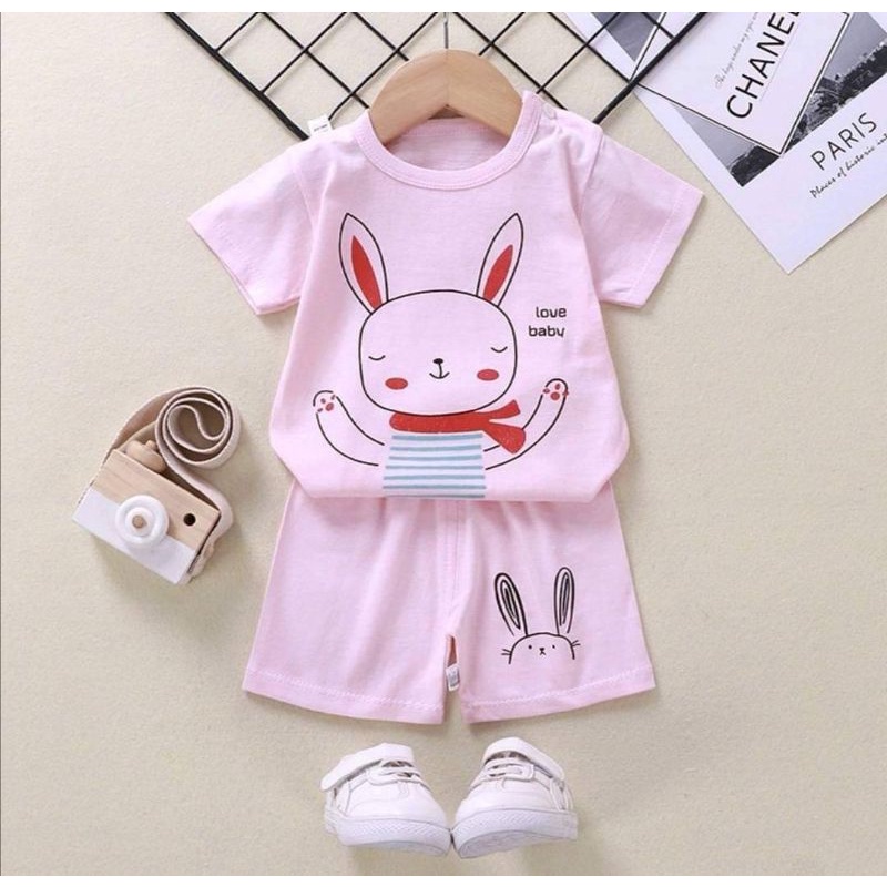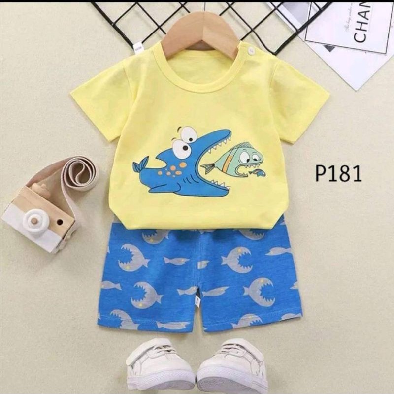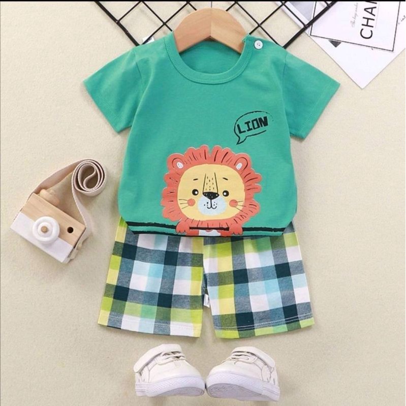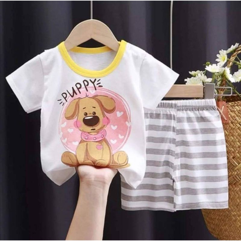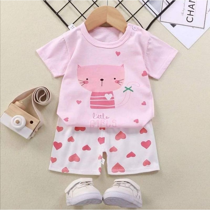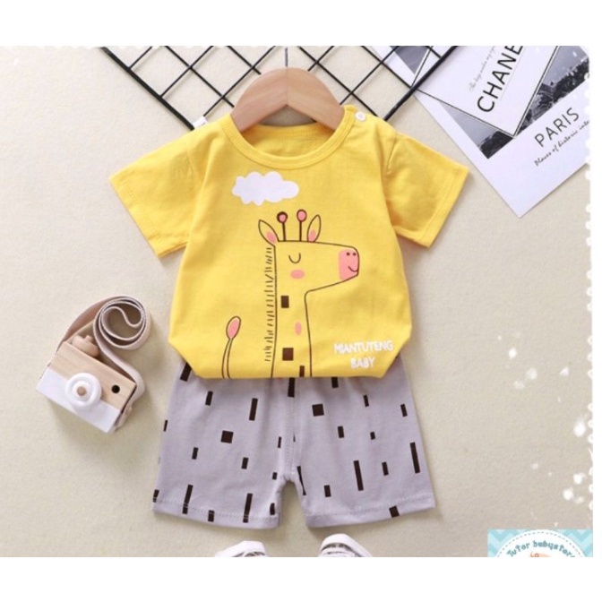 เสื้อผ้าเด็ก ชุดนอนแขนสั้น ชุดเสื้อกางเกงสั้น ลายยีราฟ / ลายเหมี่ยว