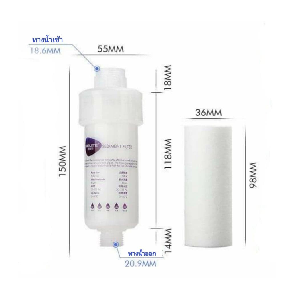 กระบอกกรองน้ำ กรองน้ำฝักบัว กรองน้ำเครื่องซักผ้า กรองน้ำอ่างล้างหน้า กรองน้ำประปา ถอดเปลี่ยนไส้กรองได้