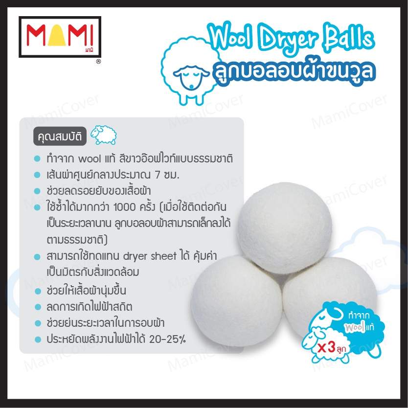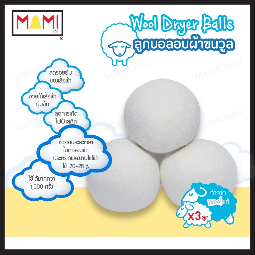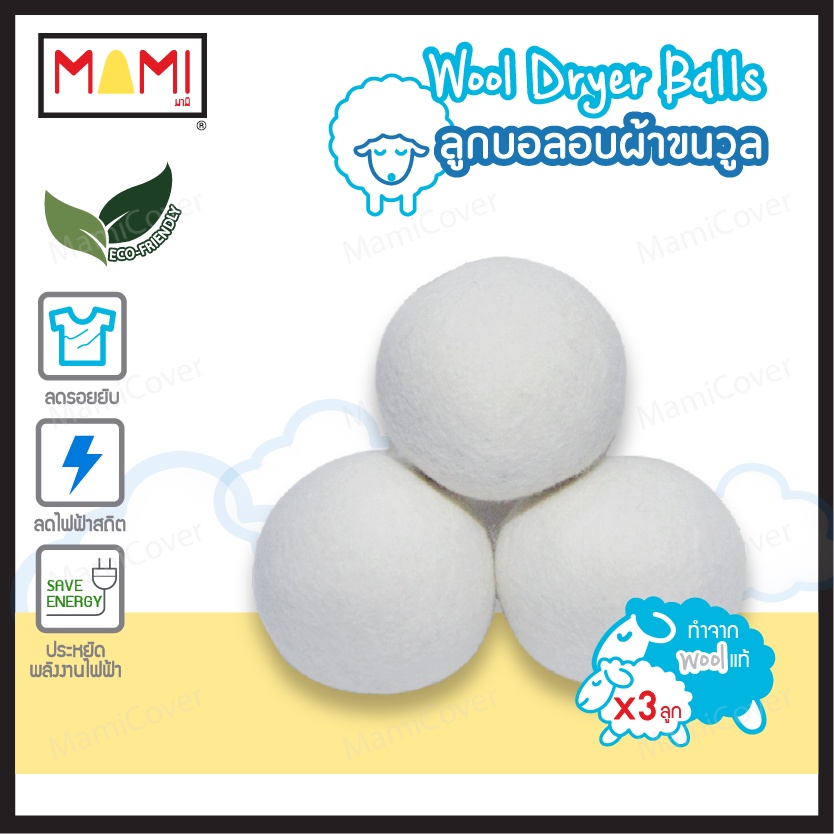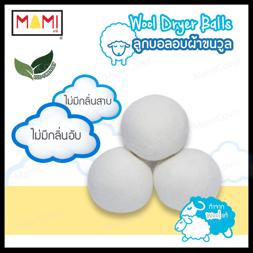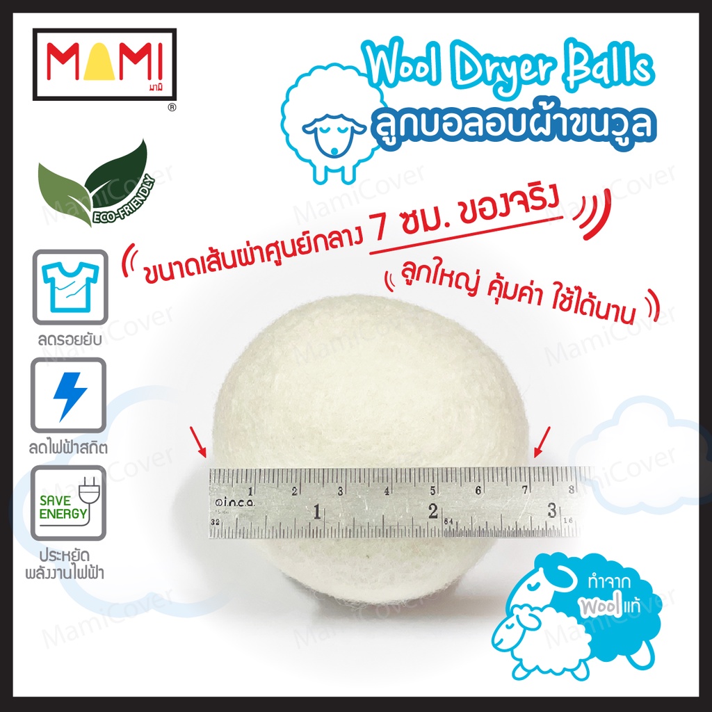 ลูกบอ ลอบผ้า ปรับผ้านุ่ม Wool Dryer Balls ชุด 3 ลูก (พิเศษ)