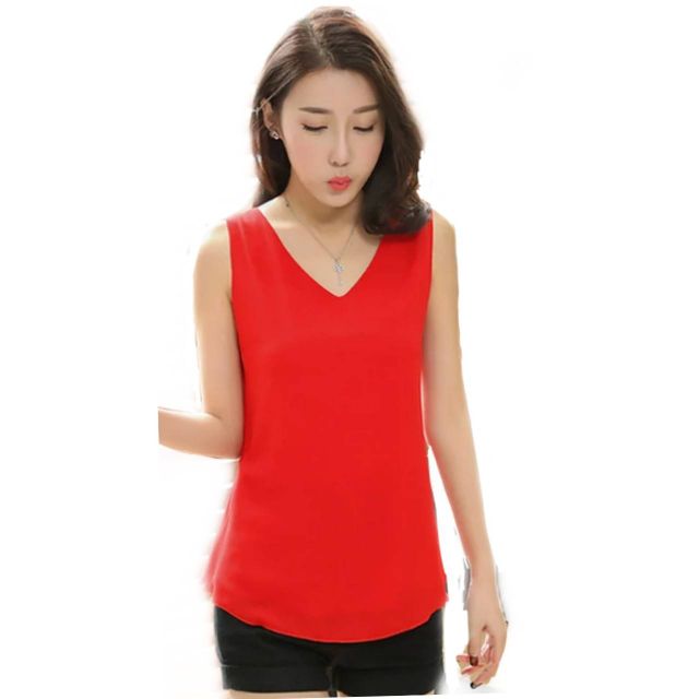 เสื้อแขนกุด คอวี ผ้าไหมญี่ปุ่น (M-XL)