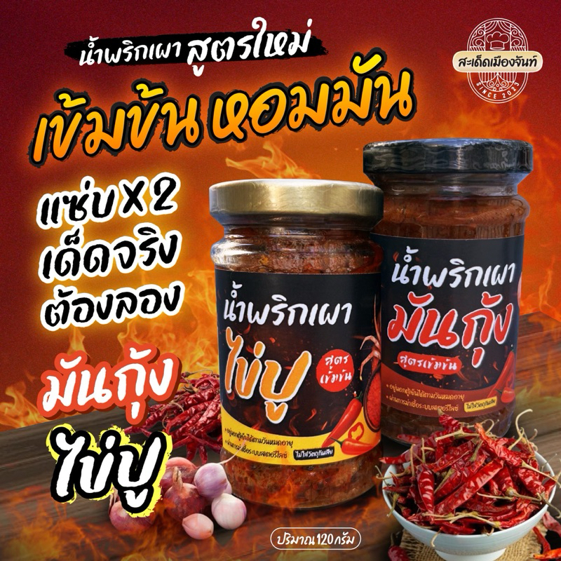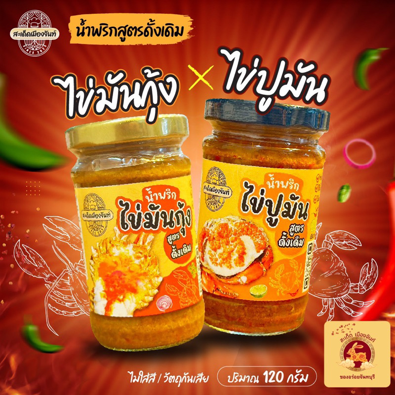 คุ้ม‼️[จัดให้ 2 กระปุก]🍤น้ำพริกไข่มันกุ้ง +🦀 น้ำพริกไข่ปูมัน ทานคู่กับอะไรก็อร่อย สูตรเด็ดจันทบุรี