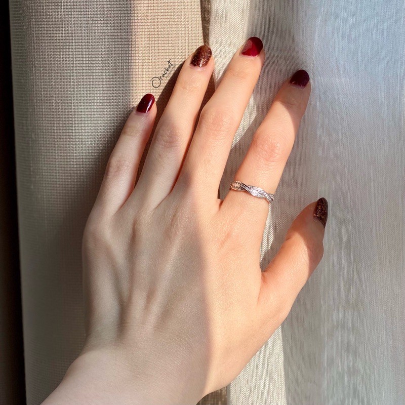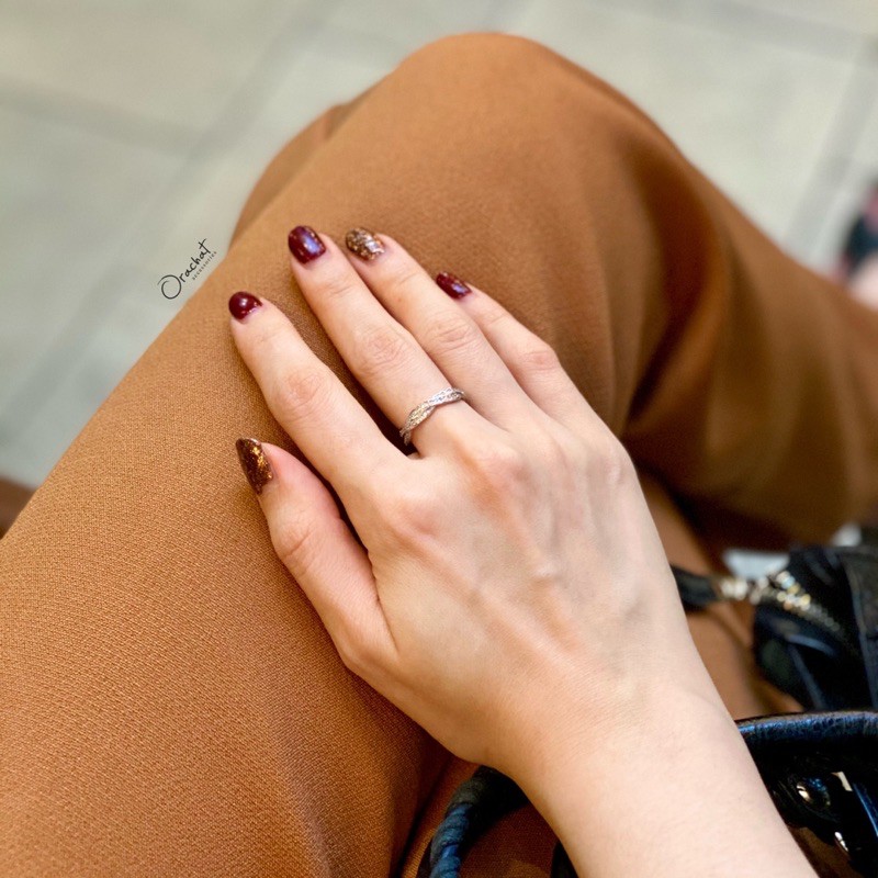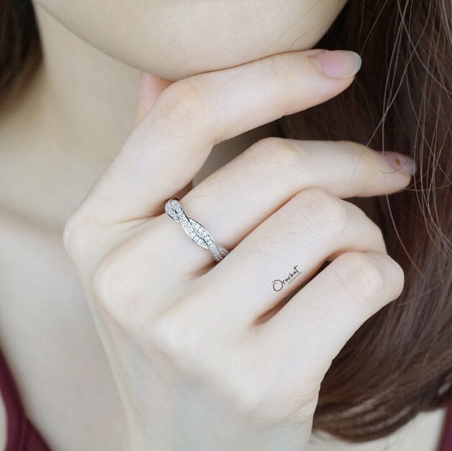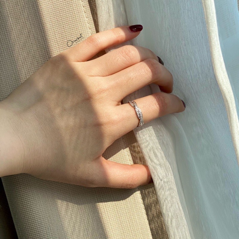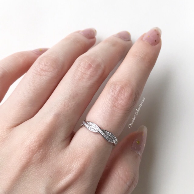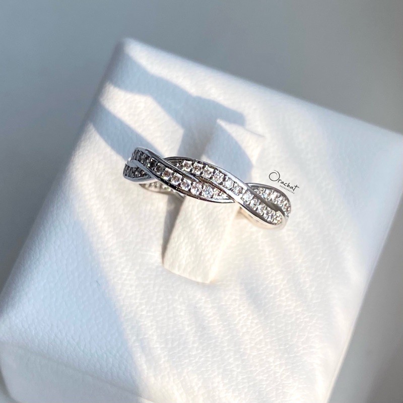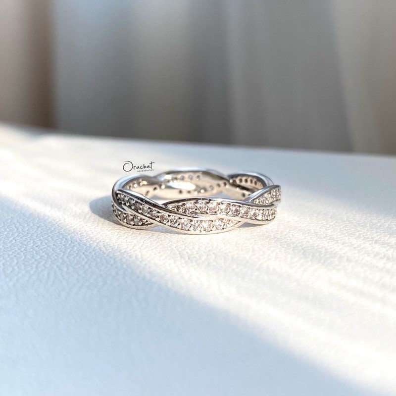 Shining curve round ring. (แหวนงานชุบทองคำขาว เพชร CZ ล้อมทั้งวง)