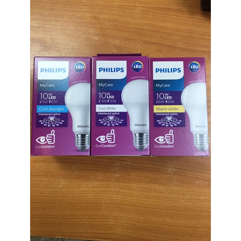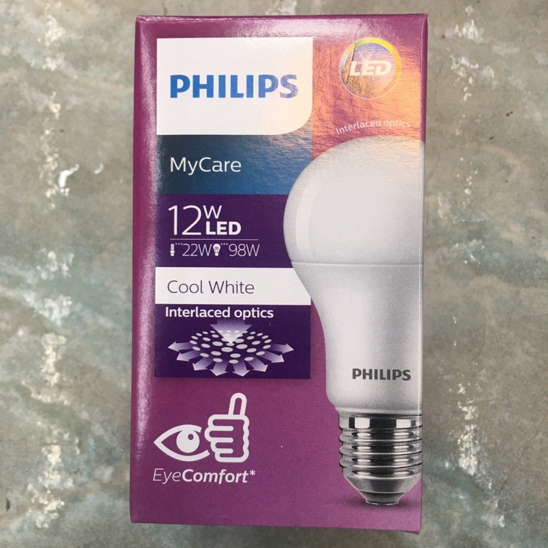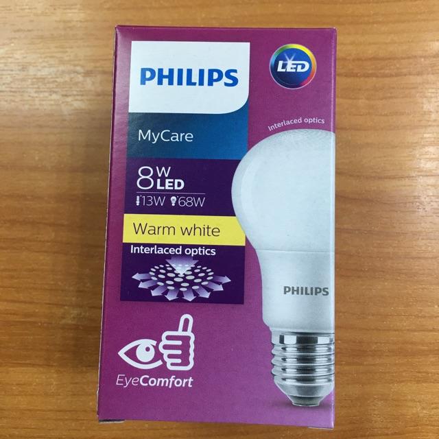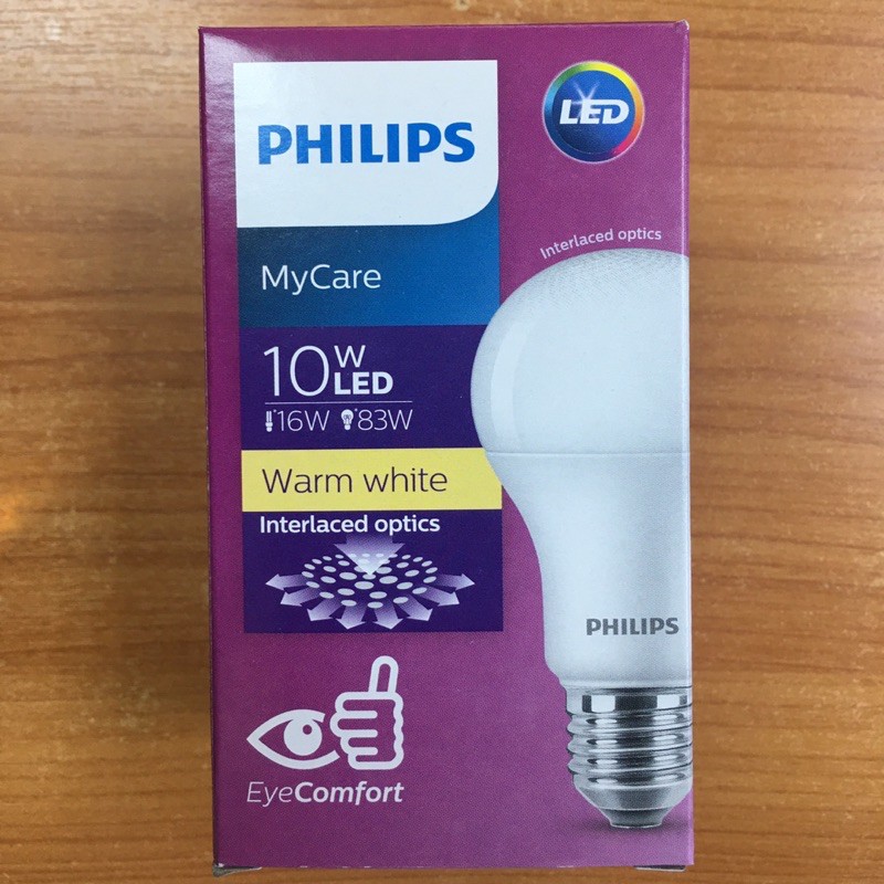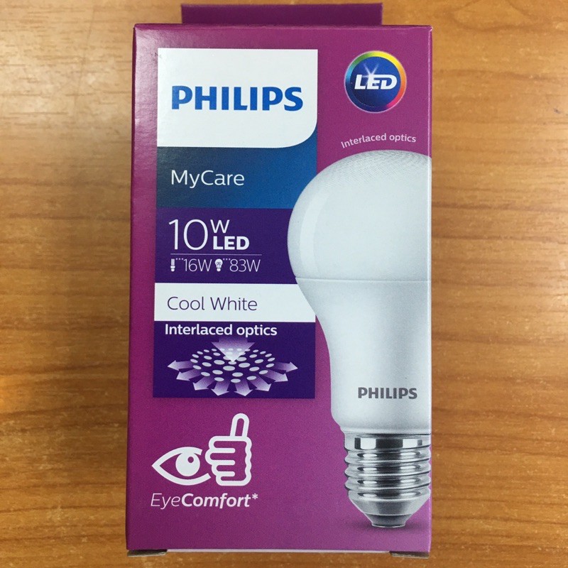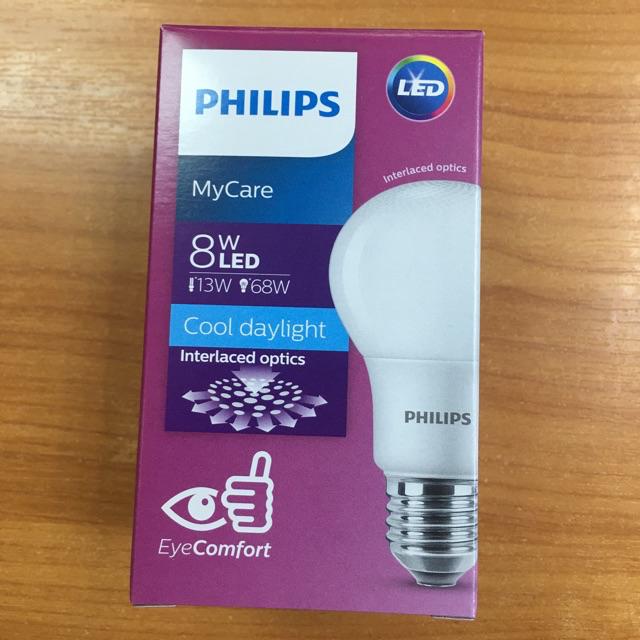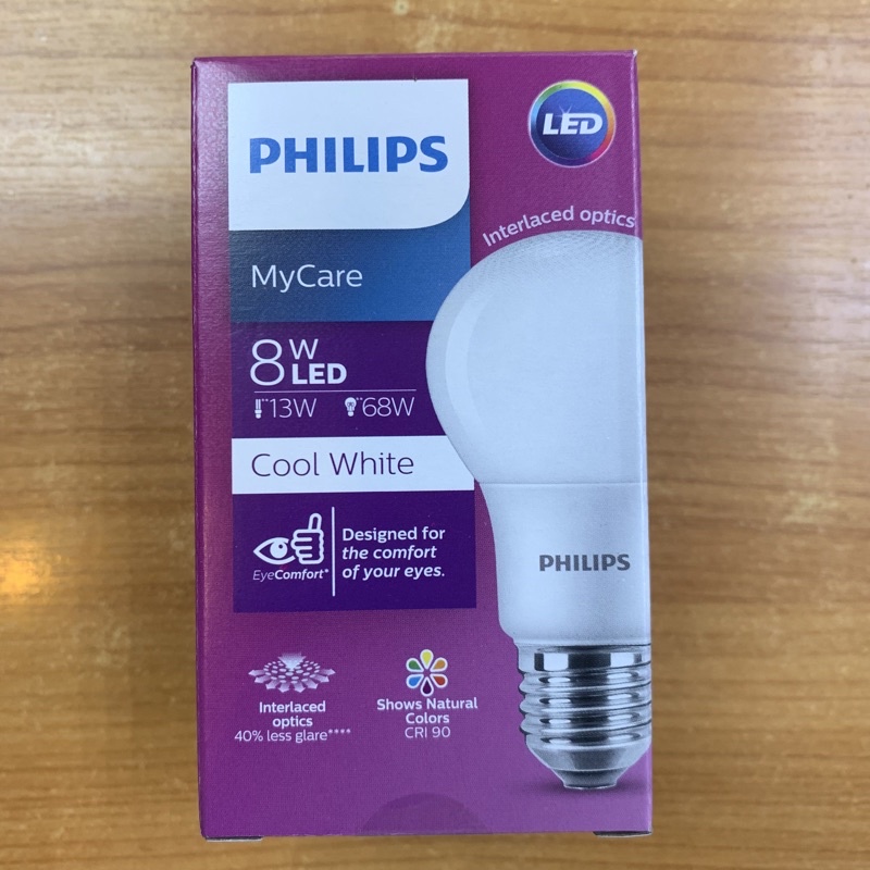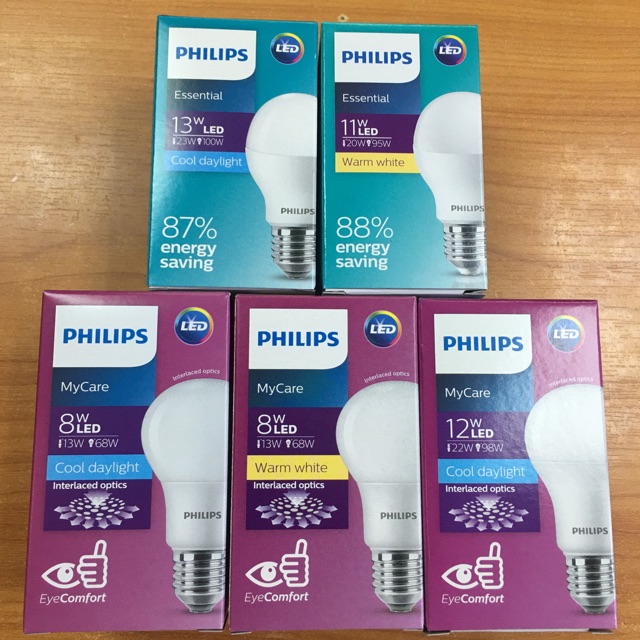 Philips หลอดไฟฟิลิปส์ LED Bulb MyCare 8W,12W E27 (รุ่นใหม่ Eye Comfort ถนอมสายตา)กล่องม่วงและรุ่นEssential 13W,11W(ฟ้า)