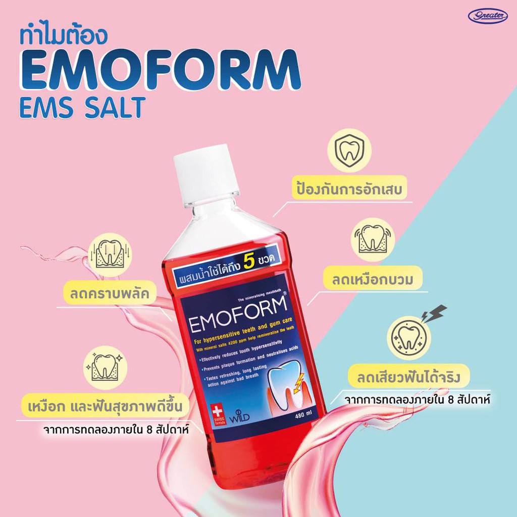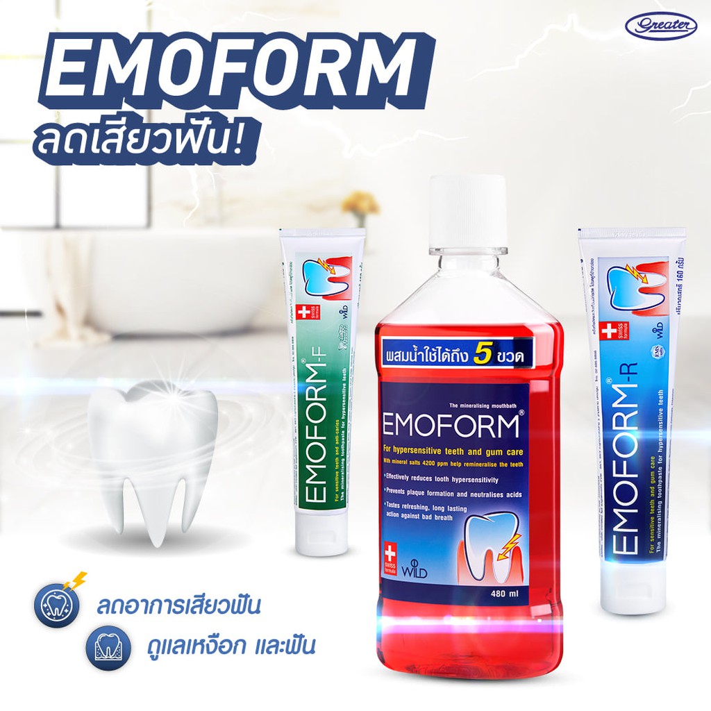 น้ำยาบ้วนปาก สูตรเข้มข้น ลดเสียวฟัน ดูแลเหงือก ขนาด 480 มล. Emoform