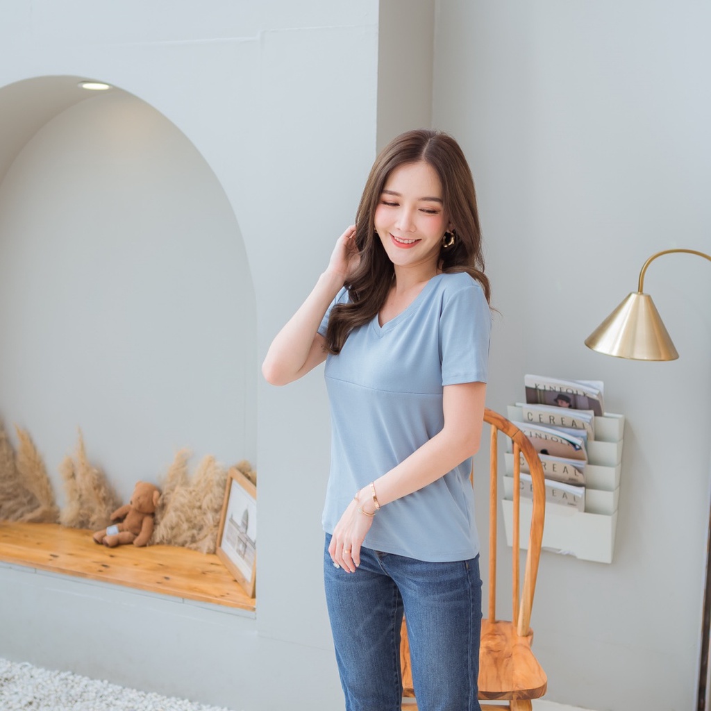 Mamong ชุดให้นม เสื้อให้นม เสื้อยืดสีพื้นผ้าคอตตอนอย่างดี