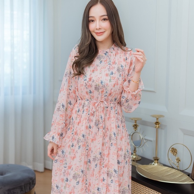 Mamong ชุดให้นม A274 เดรสพรีทให้นมลายดอก ให้นมคลุมท้องได้