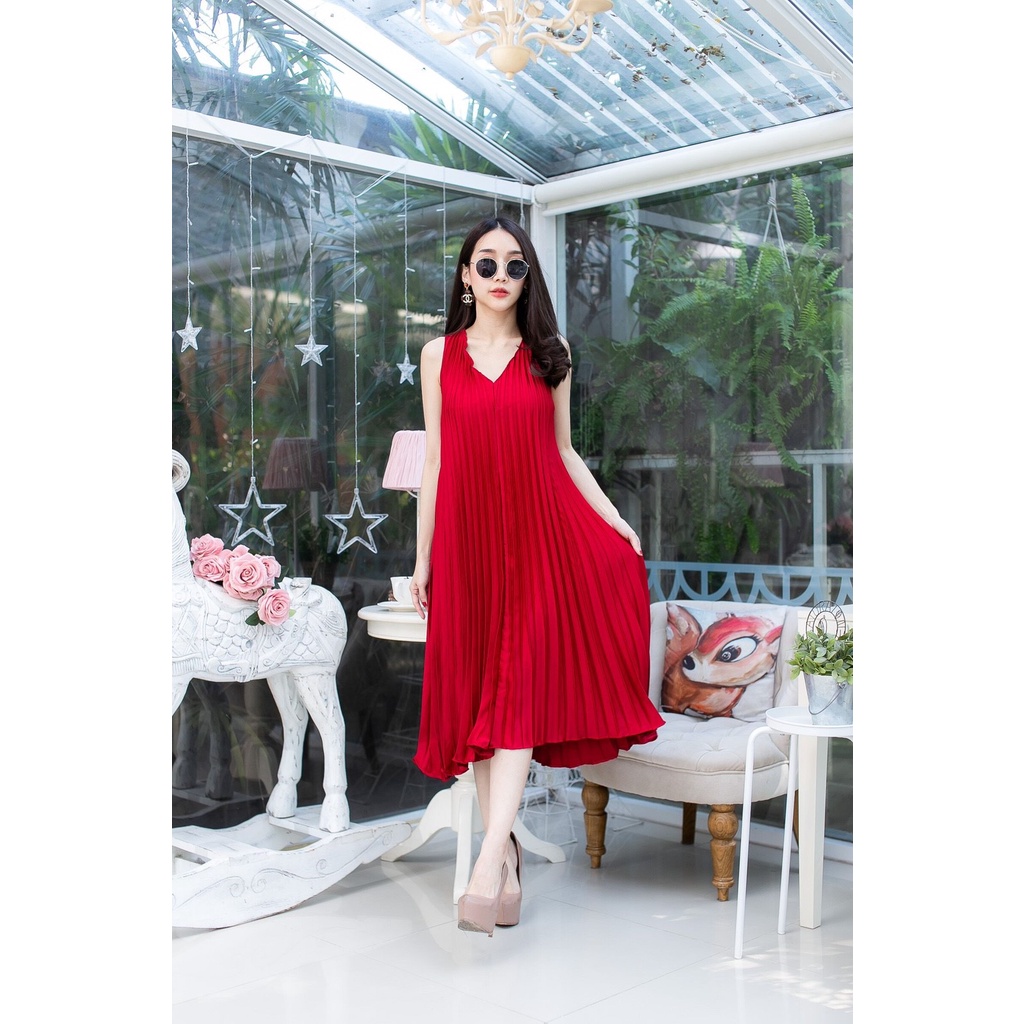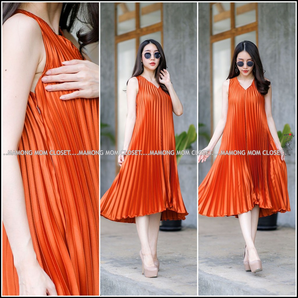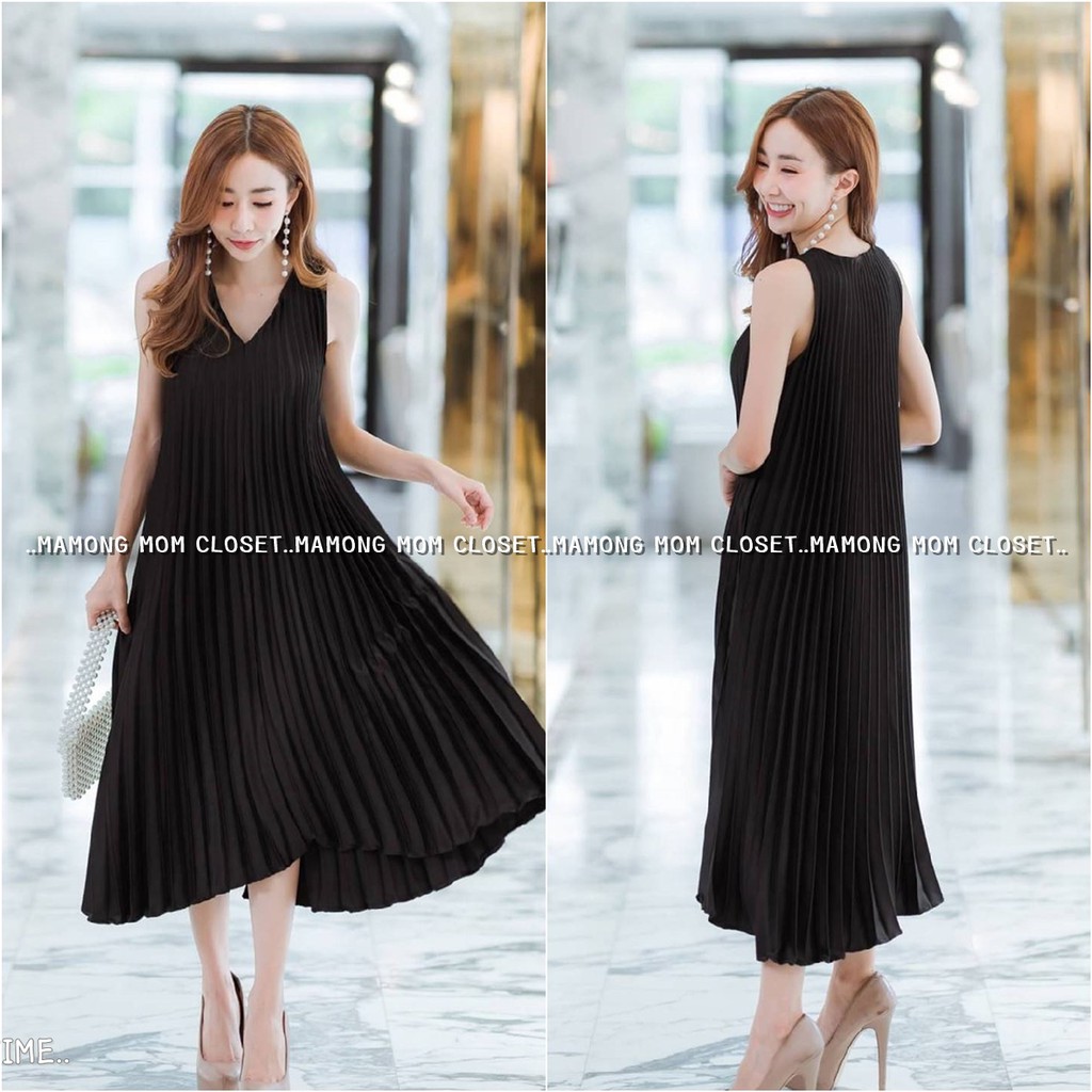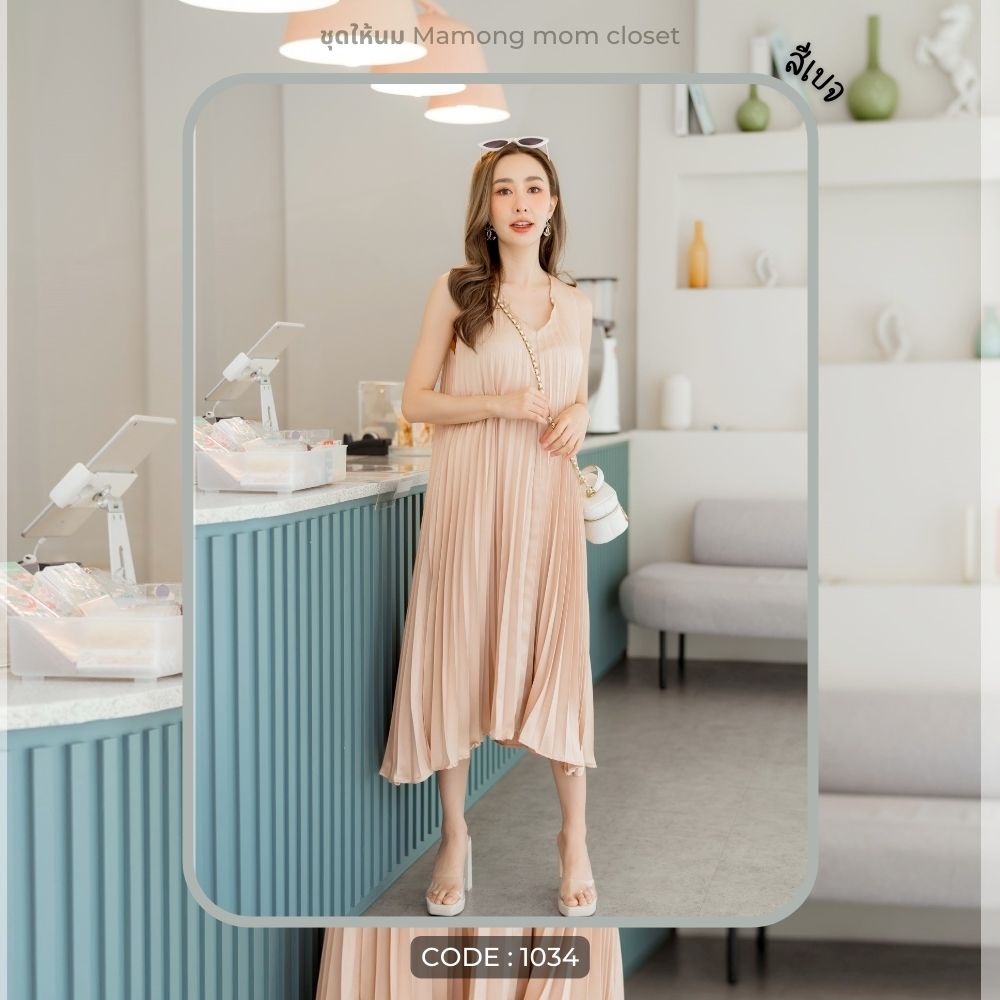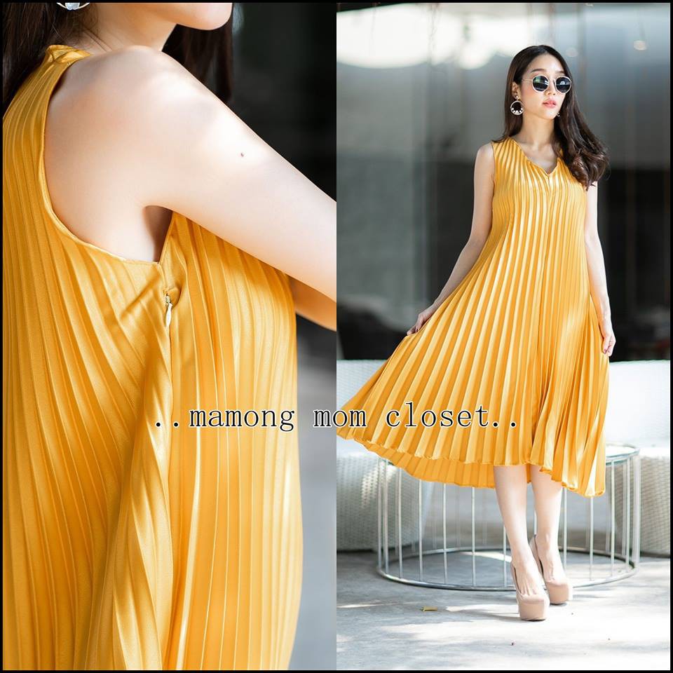 Mamong ชุดให้นม P1034 เดรสให้นมออกงานแขนกุดอัดพรีท คลุมท้องได้