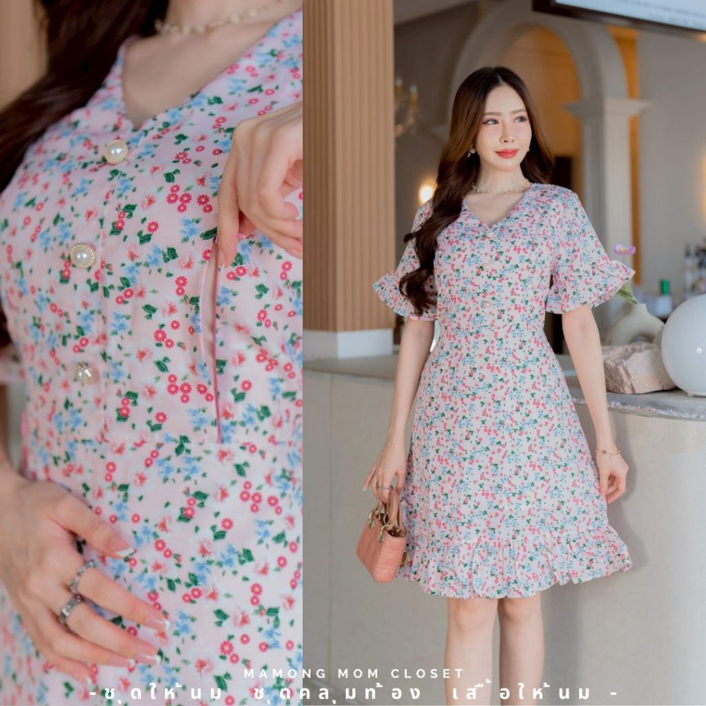 Mamong ชุดให้นม A352 เดรสให้นม รุ่นมะลิวัลย์