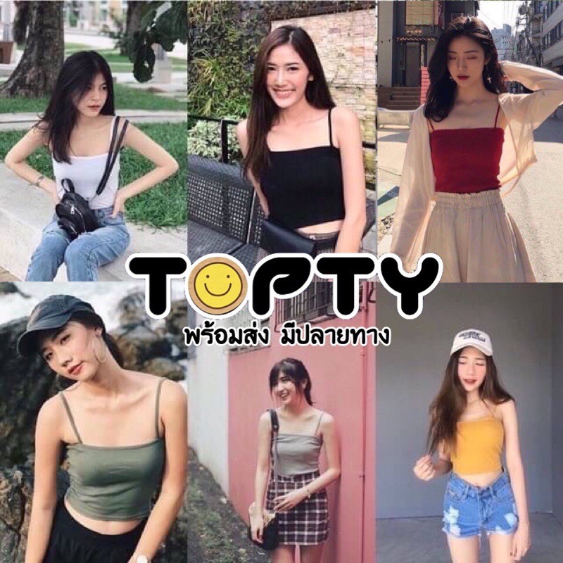 🔆TOPTY🔆สายเดี่ยววินเทจ เกาะอกมีสาย ผ้านิ่ม สีพื้นมี12สี ไม่มีฟองน้ำ #สายเดี่ยว
