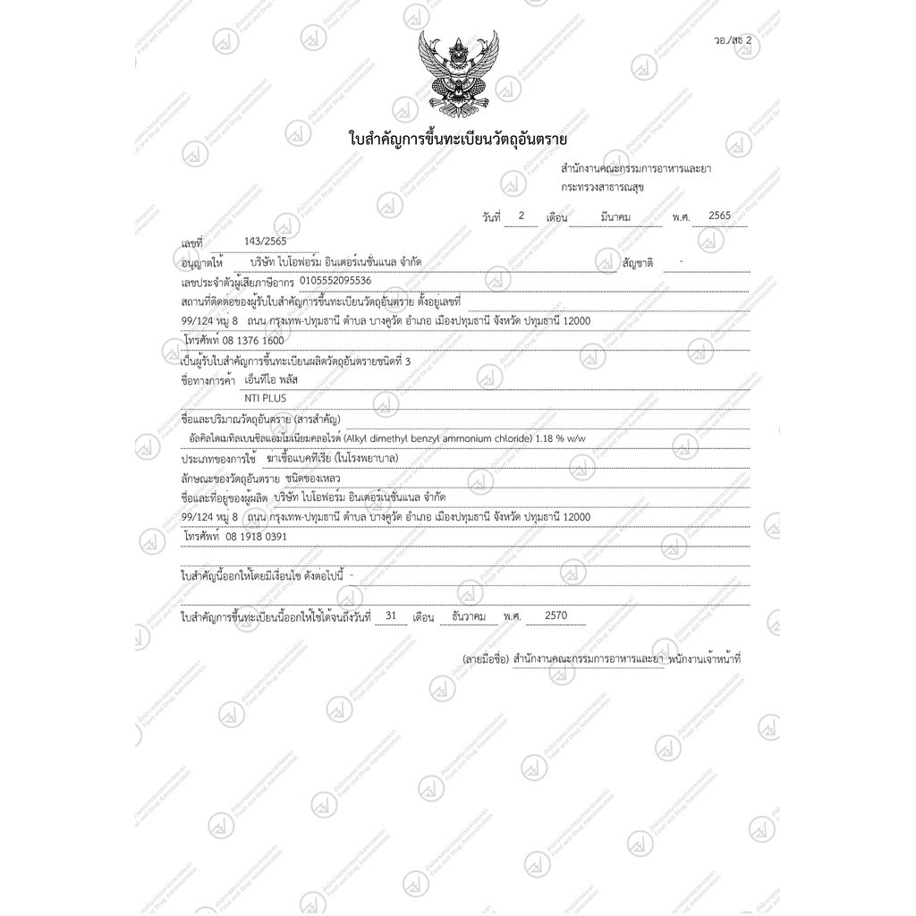 น้ำยาฆ่าเชื้อโรคอเนกประสงค์ @NtiPlus ขนาด 1000 มล. {ของแท้ 100%}