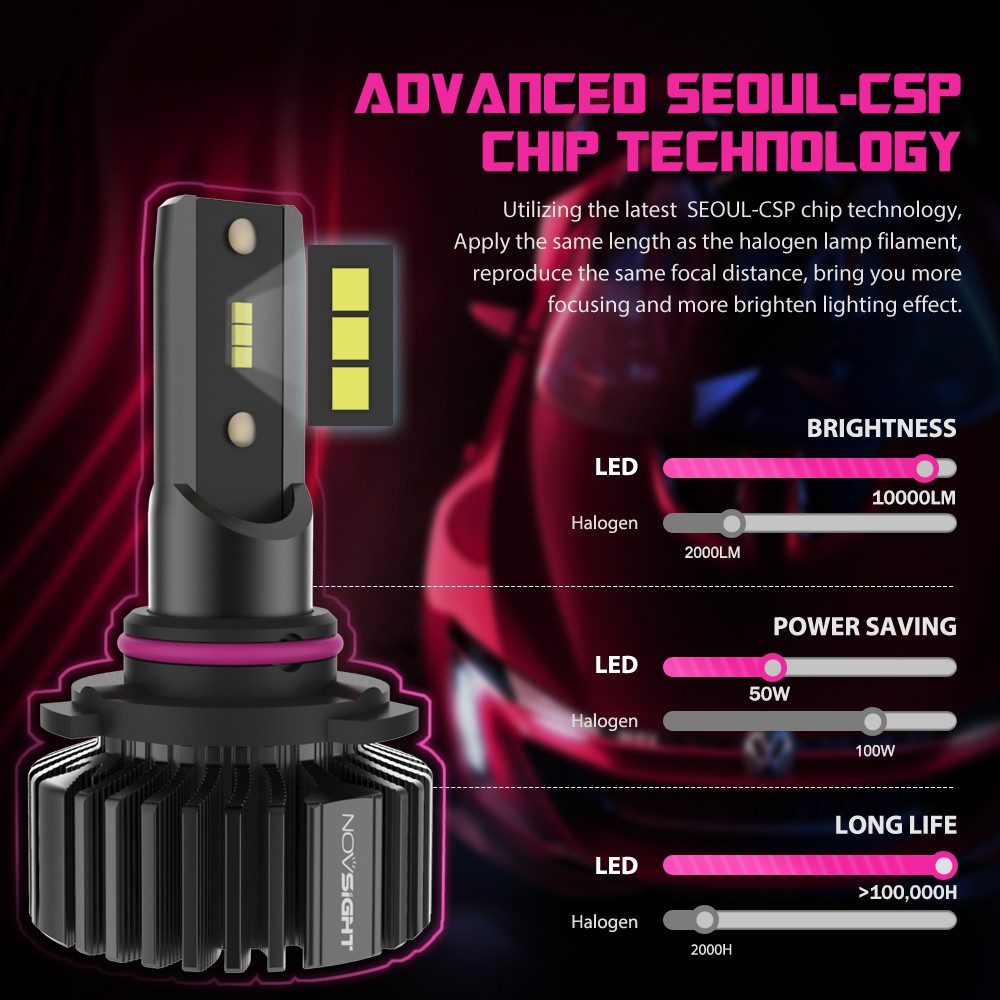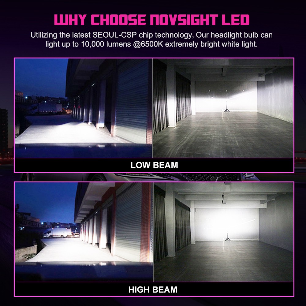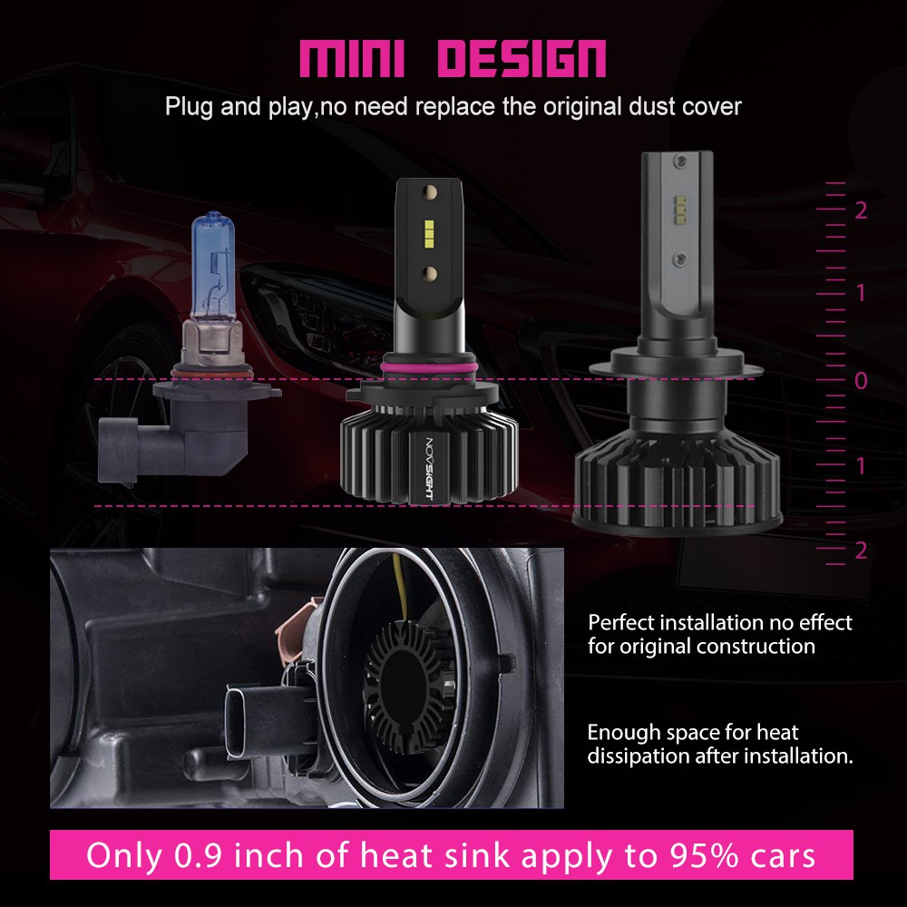 NovSight N31 H7 H4 H11 ไฟหน้ารถยนต์ LED หลอดไฟขนาดเล็ก 6500K10000LM 50W ไฟตัดหมอกรถยนต์ 360° Fanless h7 h4 h11