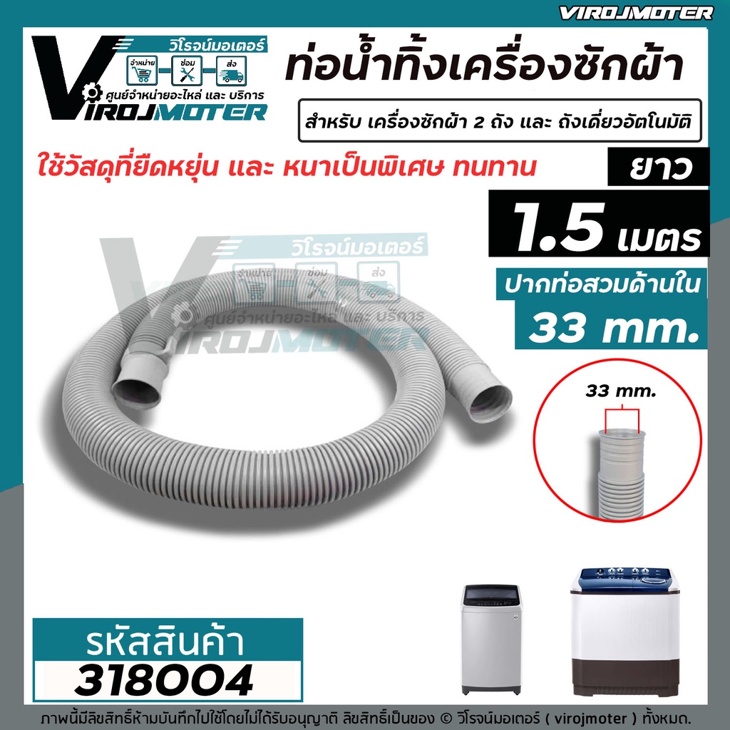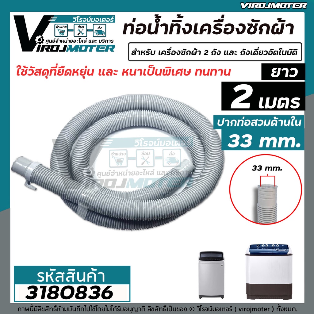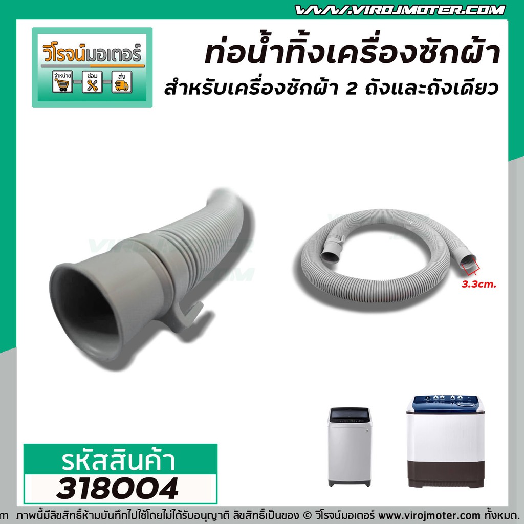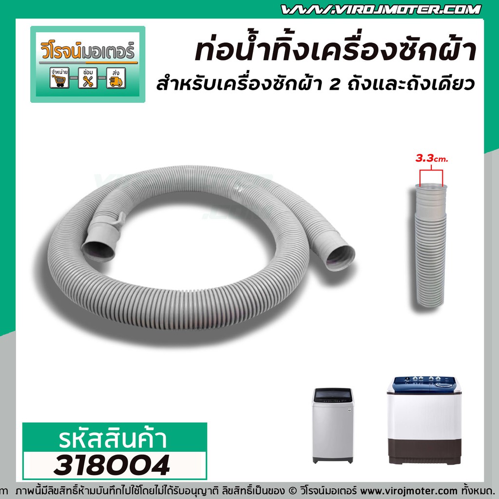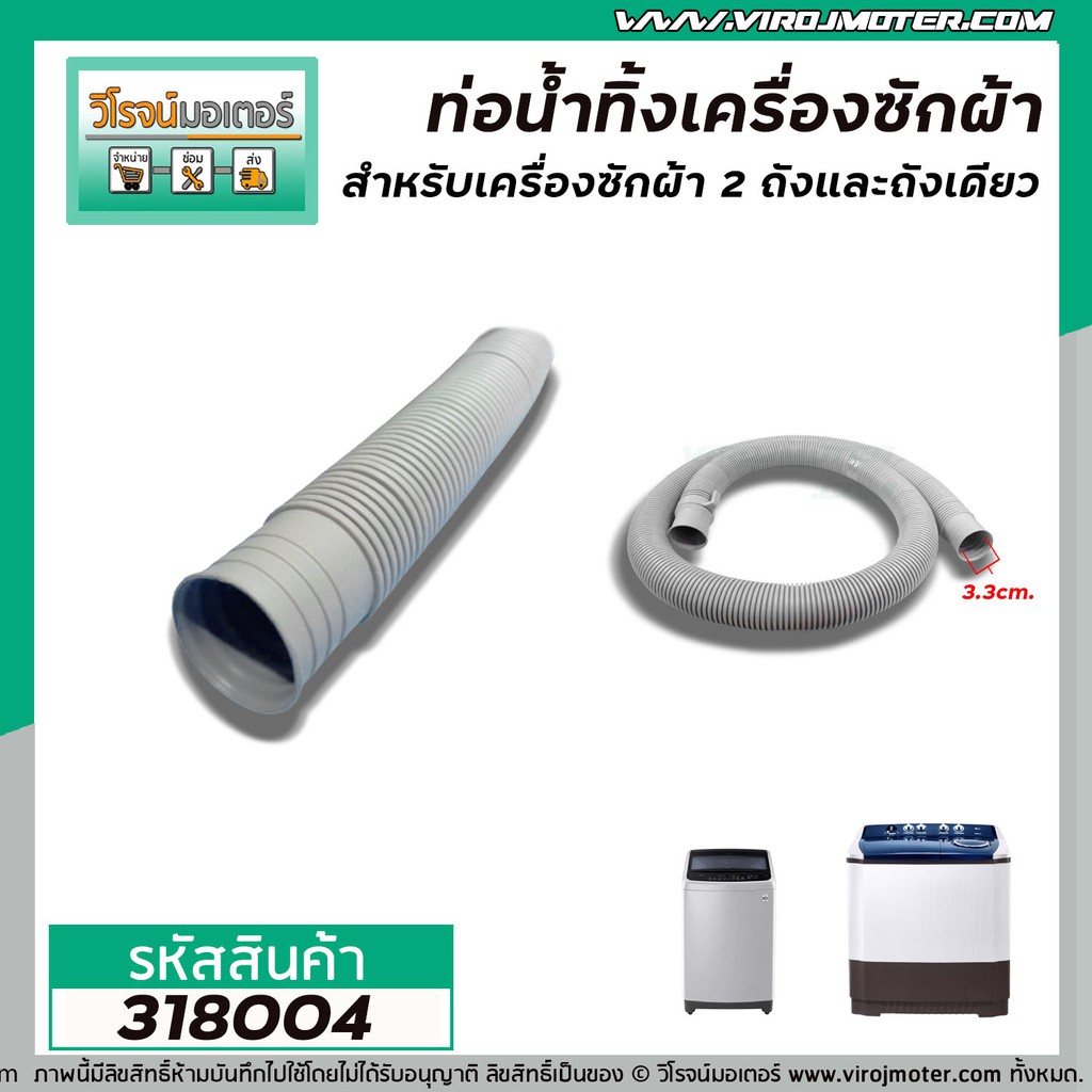 ท่อน้ำทิ้งเครื่องซักผ้า LG,Samsung,Panasosic ปากท่อ 3.3 cm. ยาว 1.5 เมตร / 2 เมตร ไซส์มาตราฐานเครื่องซักผ้าทั่วไป #ท่อ