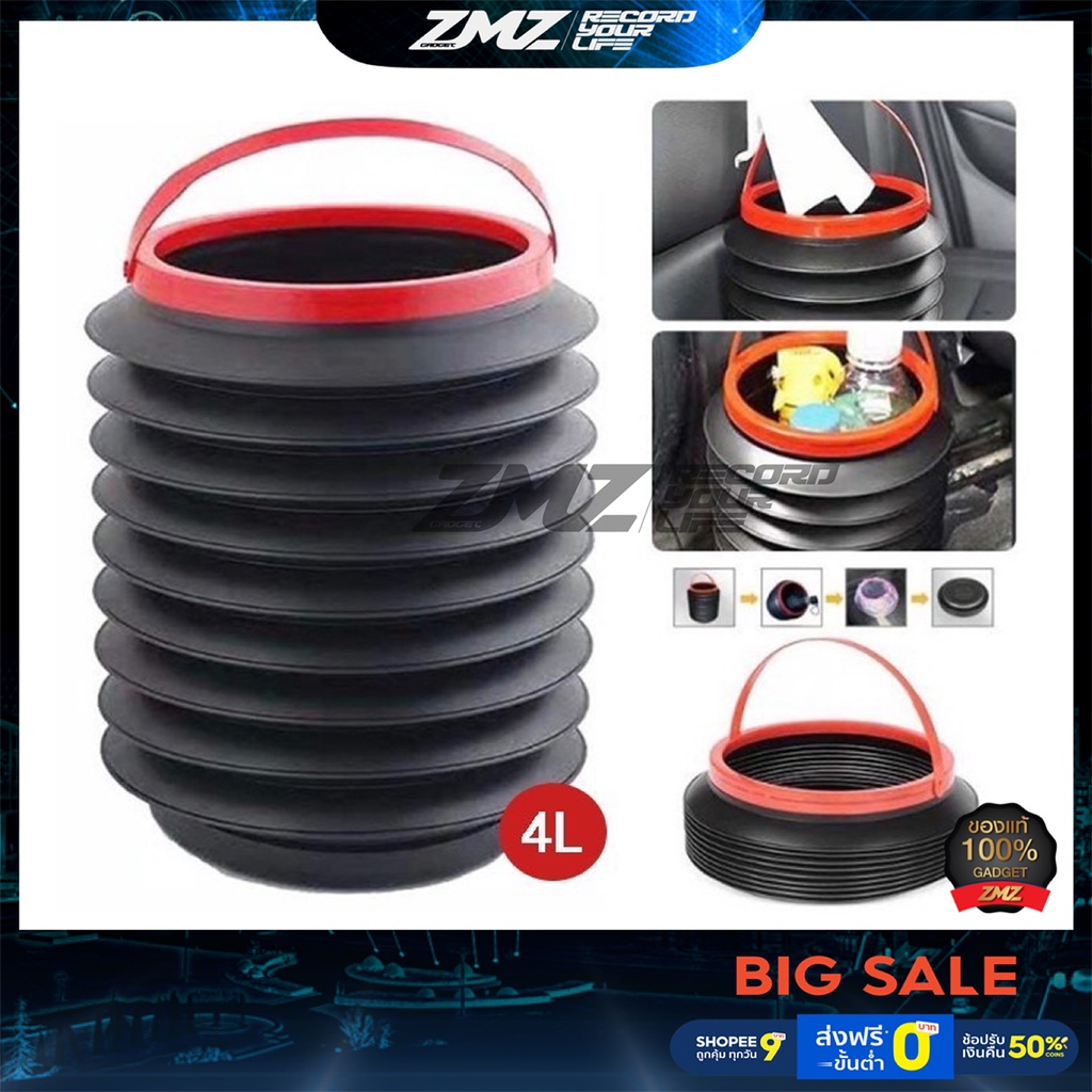 4L ถังขยะเอนกประสงค์พับเก็บได้ ใช้ได้ทั้งในรถยนต์ และภายในบ้าน