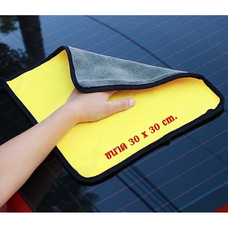 ผ้าไมโครไฟเบอร์ 3D เกรดพรีเมี่ยม หนานุ่ม ซับน้ำไว(สีเหลืองเทา) 30x30cm