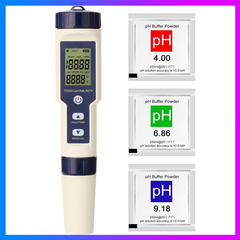 5 in 1 เครื่องวัดค่า PH EC TDS ความเค็ม เครื่องวัดอุณหภูมิดิจิทัล อเนกประสงค์