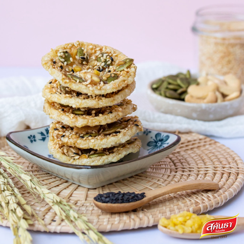 ขนมไทย สุคันธา ข้าวตังธัญพืช 175 กรัม ไซส์ Family pack ขนมอร่อยจากเพชรบุรี แพคชิ้นเดี่ยว
