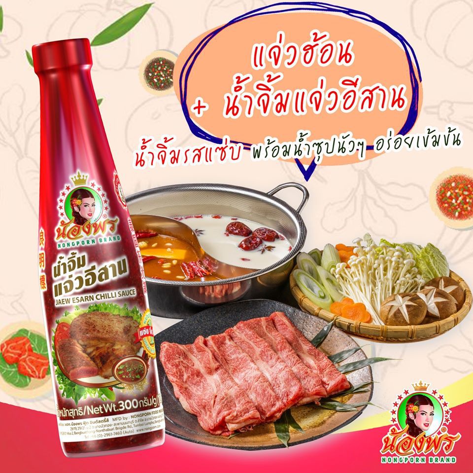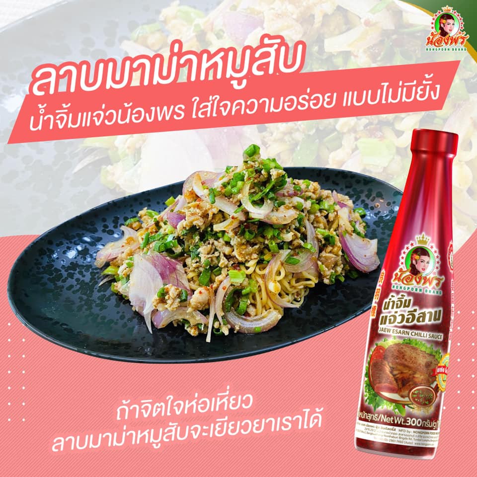 NONGPORN น้ำจิ้มแจ่วอีสาน ตราน้องพร ขนาด 300กรัม (แบบขวด)