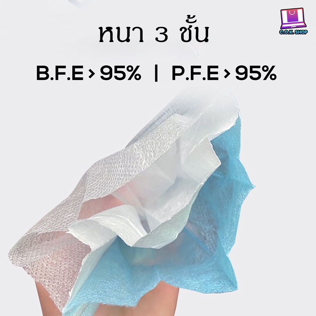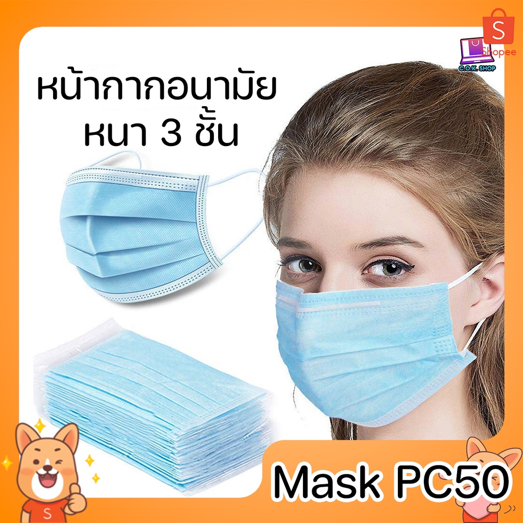 Face Mask หน้ากากอนามัย หนา 3 ชั้น จำนวน 50 ชิ้น ไม่เจ็บหู แมสปิดจมูก หน้ากากอนามัย แมส 3 Ply (1 แพ๊ค/50ชิ้น)หน้ากาก หน้