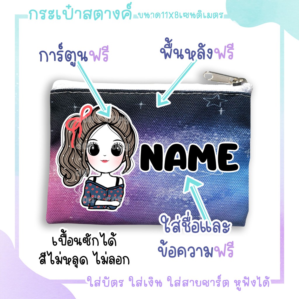 กระเป๋าผ้า เติมชื่อและเลือกสกรีนลายได้ กระเป๋าใส่เงินใส่ของ ของขวัญ ของชำร่วย