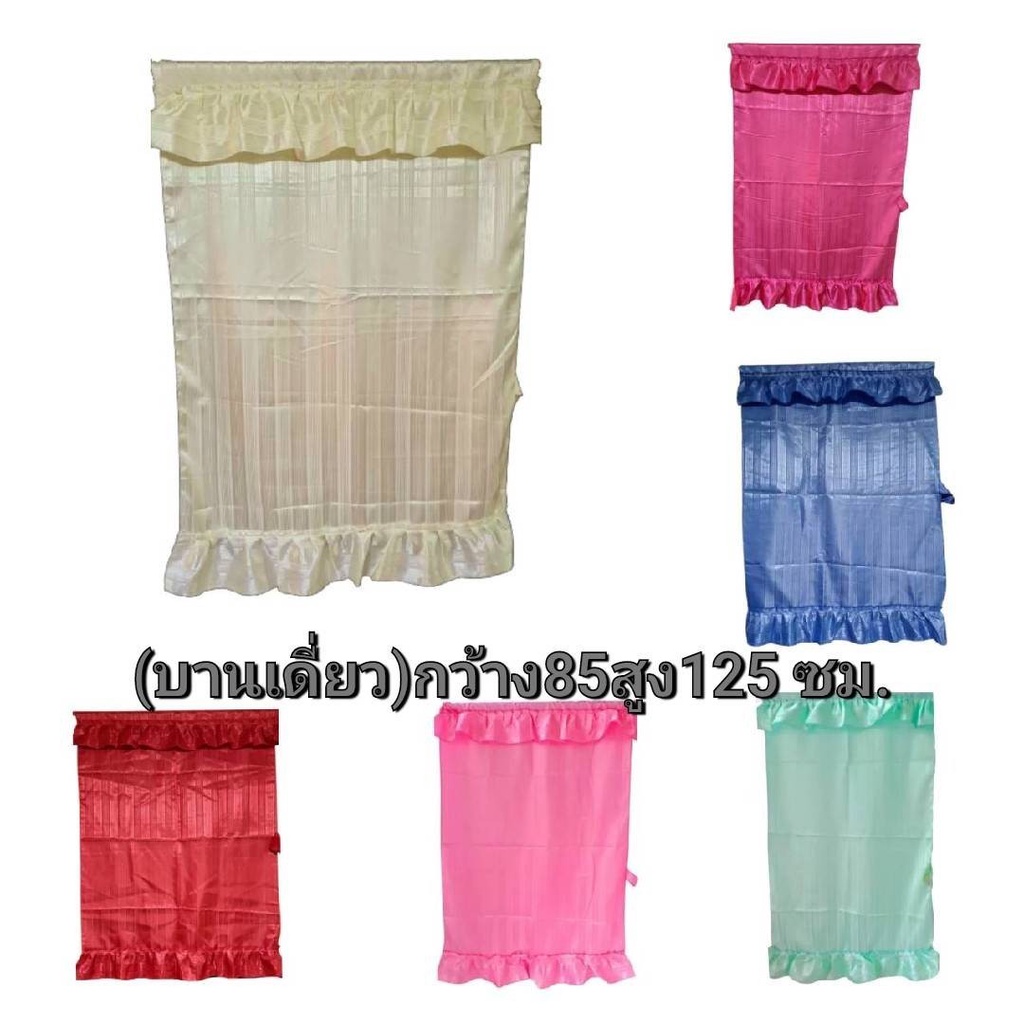 ม่านหน้าต่างต่วน ม่านมัน (แบบสอด) สีพื้น มีสายรวบในตัว ม่านบานเกร็ด ( บานเดี่ยว) ติดตั้งง่าย