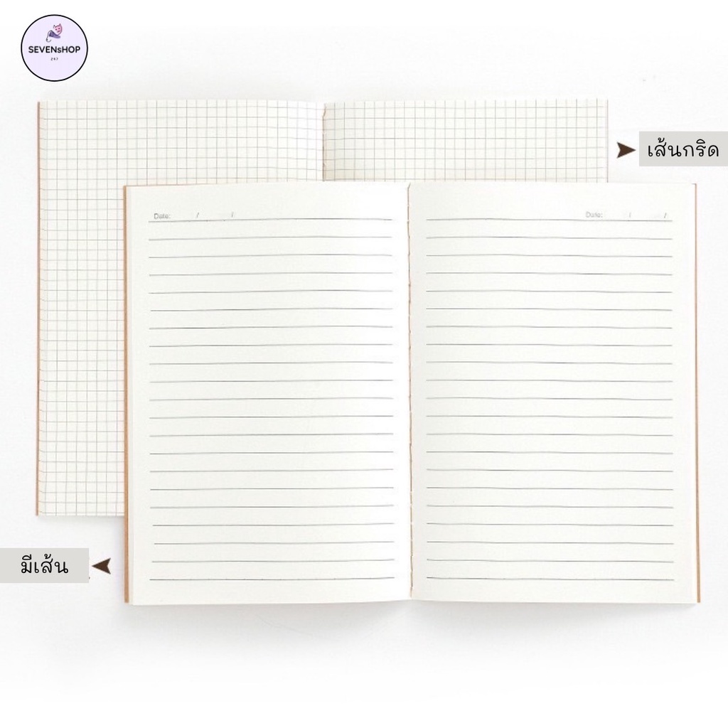 SEVENsHOP247 สมุด สมุดโน๊ต เย็บด้าย ปกดำ น้ำตาล มีเส้น เส้นกราฟ ขนาด A5 B5