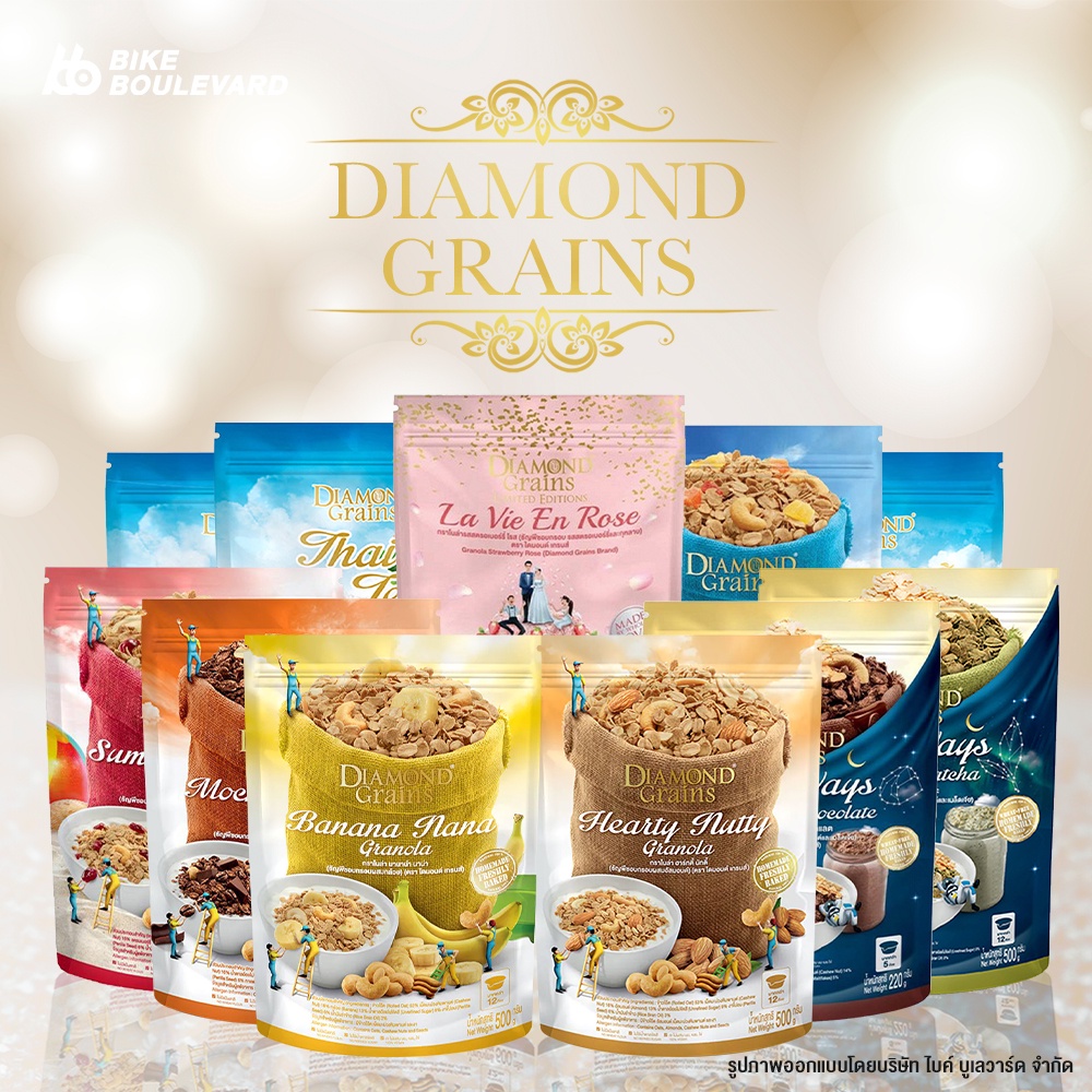 Diamond Grains Granola กราโนล่า 500 กรัม ช็อกโกแลต กาแฟ ชาไทย เบอร์รี่ อาหารเช้า ซีเรียล