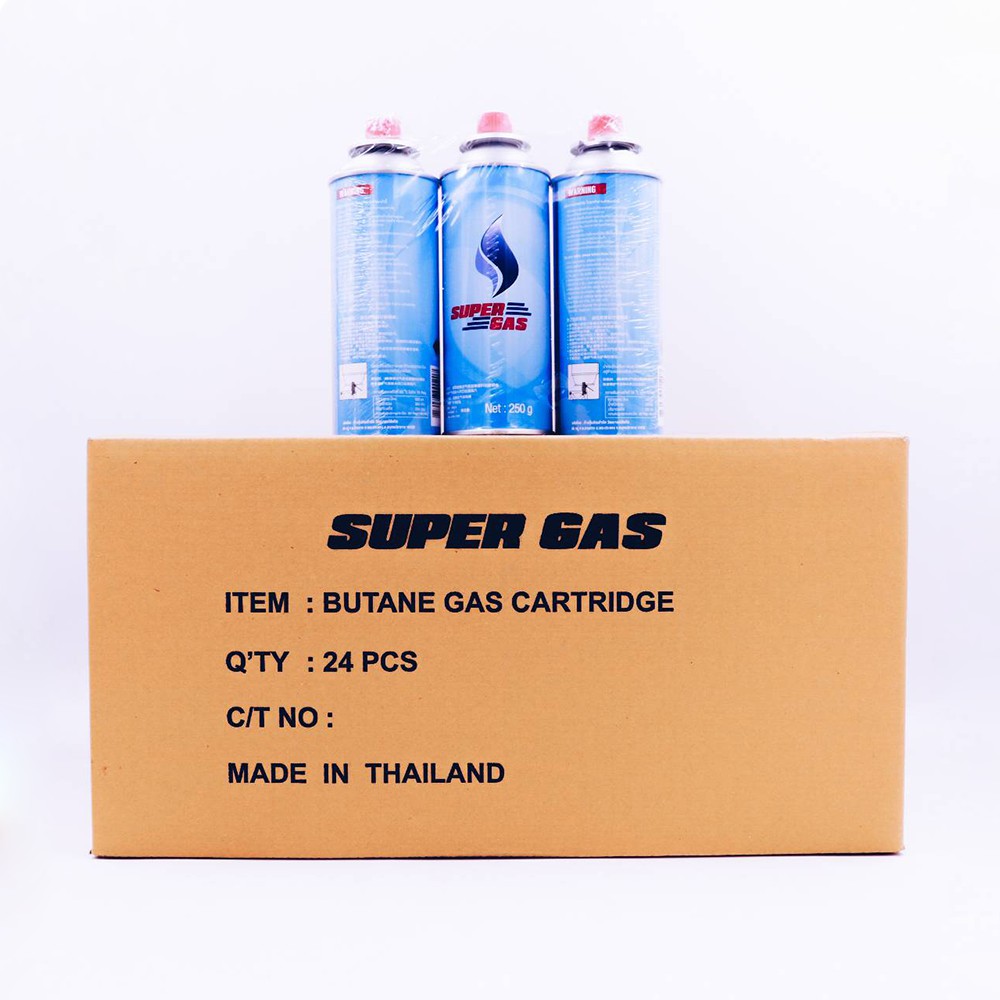 [24 กระป๋อง] Supergas แก๊สกระป๋อง ปริมาณก๊าซ 250 กรัม ยกลัง ใช้นานได้ถึง 4-6 ชั่วโมง แก๊สปิกนิก