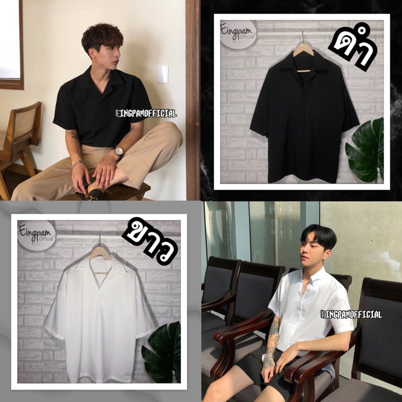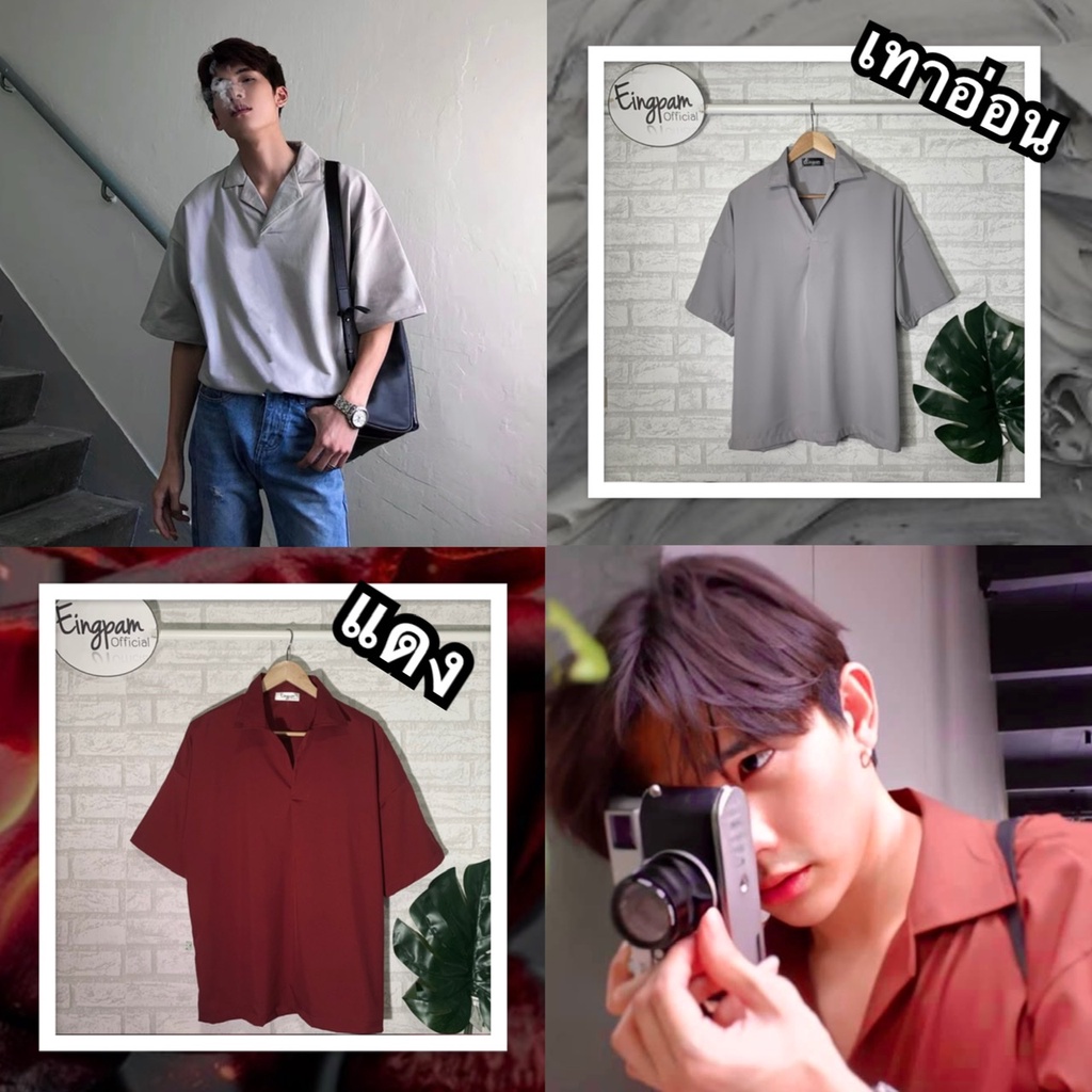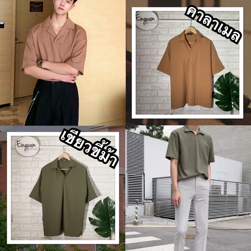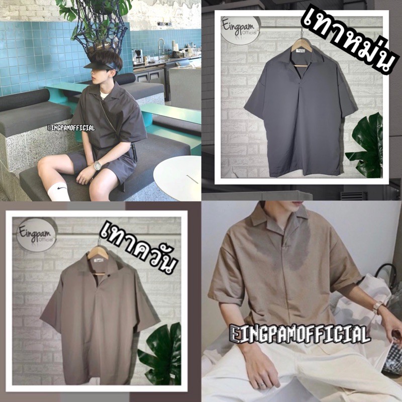 ซื้อผ่านวิดีโอลด30%💥ใช้ได้จริง! เสื้อเชิ้ตผู้ชาย สีพื้นมินิมอล 🇰🇷เสื้อฮาวายสไตล์เกาหลี รุ่นไม่มีกระดุม Hawaii shirt
