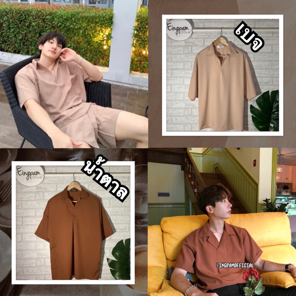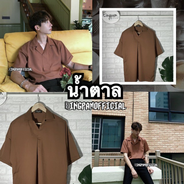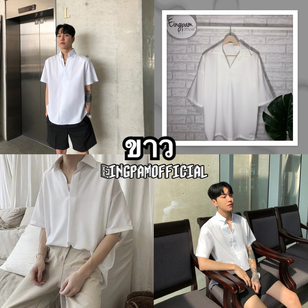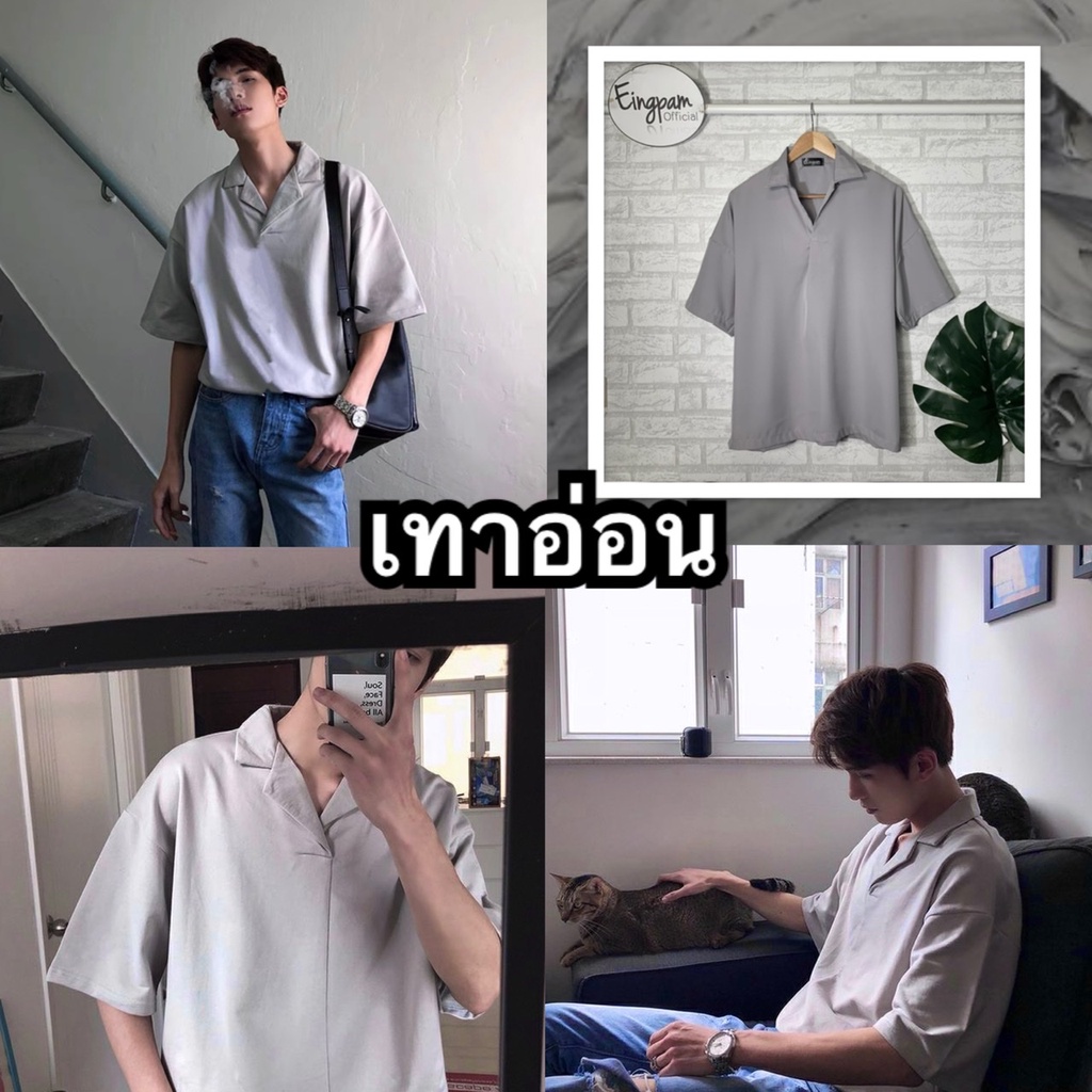 ซื้อผ่านวิดีโอลด30%💥ใช้ได้จริง! เสื้อเชิ้ตผู้ชาย สีพื้นมินิมอล 🇰🇷เสื้อฮาวายสไตล์เกาหลี รุ่นไม่มีกระดุม Hawaii shirt
