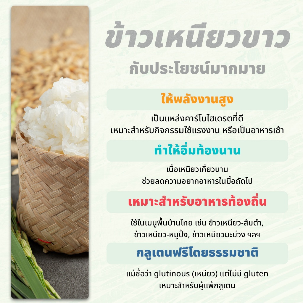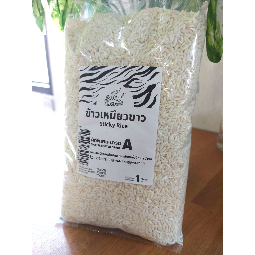 ข้าวเหนียวขาวเขี้ยวงูเชียงราย 1 กิโลกรัม ตราเสือบิน | (Sticky Rice)